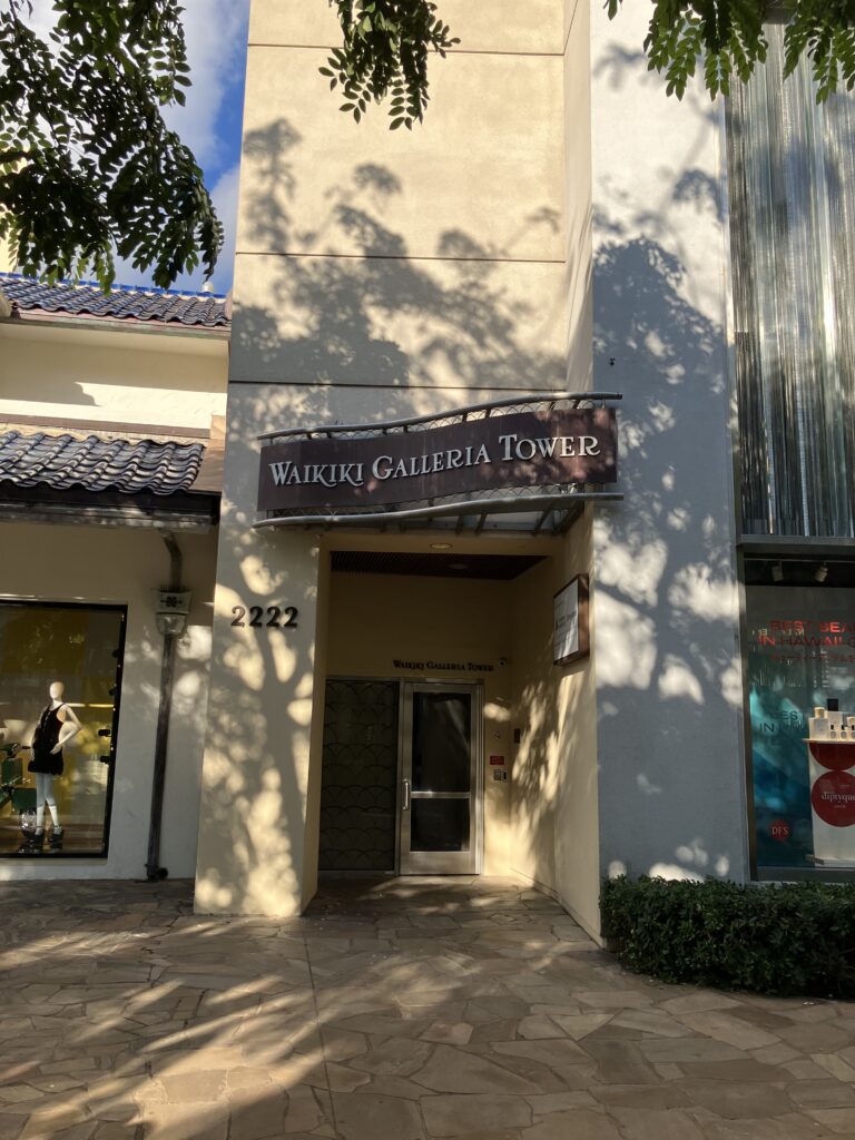 弊社ワイキキオフィスはワイキキの中心部DFS Galleria 免税店の6階にございます。免税店とオフィスタワーの入り口が異なるためここでオフィスへの行き方を紹介をさせていただきます。