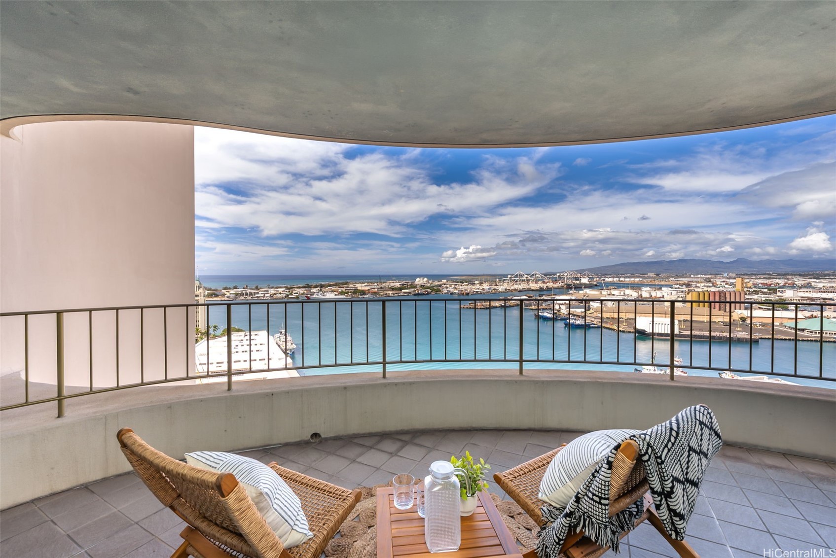 Waterfront gem in downtown Honolulu’s iconic Harbor Court luxury condo - this high-floor unit offers a spacious open floor plan, floor to ceiling windows, two well-appointed bedrooms each paired with an en suite bathroom, and a generously sized lanai to enjoy stunning south shore Oahu views. Exuding refined living, each residential floor consists of just five units, and the 14th floor rec deck offers resort-style amenities - heated infinity pool, jacuzzi, al fresco bbq areas, conference room, rec space, fitness center, library, and of course an observation tower. Renowned Architect, Norman Lacayo’s influence is seen in Harbor Court’s landmark design elements - a monumental ground floor plaza, elegant fountains, and a tiered exterior form that artfully interacts with light and shadow. Abundant guest parking, an attentive residential manager, and 24-hr security ensure residents and their guests are taken care of. While surrounded by an abundance of downtown dining, shopping, and entertainment, a convenience store and fine dining restaurant, Pai, are also located in the lobby. Convenient, distinguished (and pet-friendly) - make this remarkable residence yours!