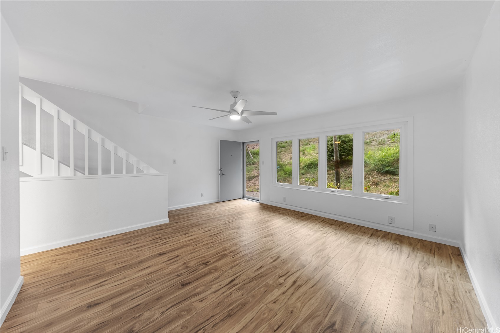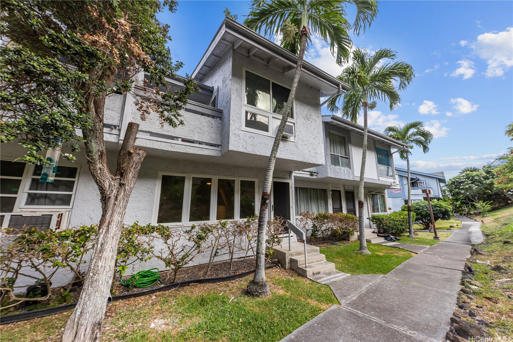 RARELY AVAILABLE townhome in Mariners Village III, offering a peaceful and relaxed lifestyle in beautiful Hawaii Kai. Wake up to gentle trade winds, gorgeous mountain views, and stunning sunrises in this inviting split-level 3-bedroom, 2.5-bath home. The recently upgraded kitchen features quartz countertops and stainless steel appliances, perfect for family meals and gatherings. Enter from your ground-level 2-car covered carport and head upstairs to the spacious main floor with an open-concept kitchen, bright living area, and a convenient half bath. Enjoy morning coffee or family dinners on the covered lanai overlooking lush surroundings. Upstairs, the primary suite includes its own lanai and full bath, while the two guest bedrooms share another lanai with mountain views—ideal for creating cozy family spaces. This pet-friendly community (buyer to verify) is close to Costco, Safeway, Koko Marina shops, local eateries, and 24 Hour Fitness. A wonderful place to call home.
