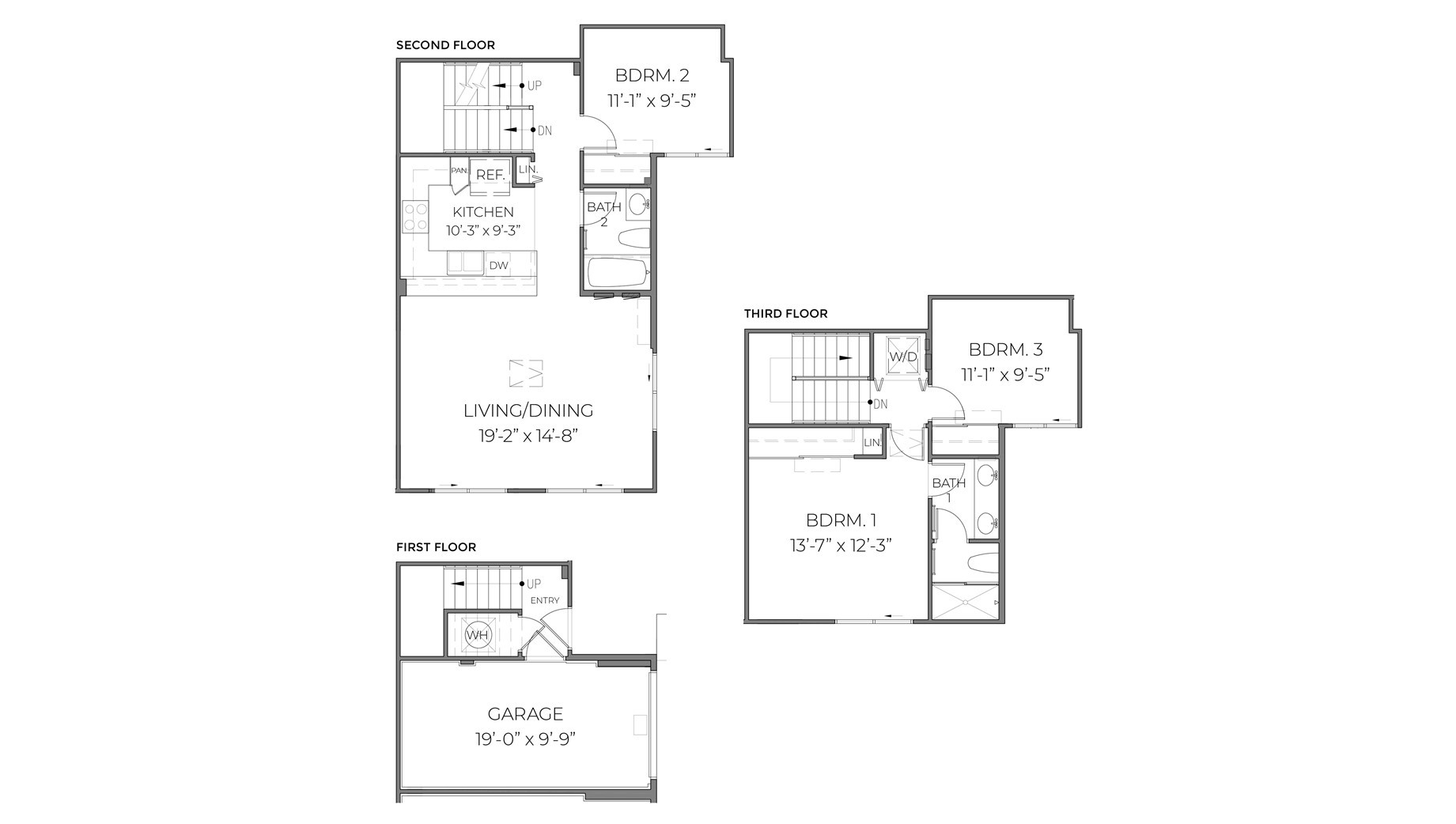 This three story 3 bedroom and 2 bathroom condominium consists of 1,208 square feet (net) of living area with an attached garage on the ground floor. When you step into this home, you will be greeted by the kitchen featuring stainless steel appliances and white cabinets. The kitchen flows seamlessly into the dining and living room. The main floor consists of a secondary bedroom with a sliding door closet, and a full bathroom. The third level features a third bedroom with a sliding door closet and the primary bedroom with a sliding door closet and ensuite bathroom with a double vanity and walk-in shower. Whole house split air conditioning and modern appliances including a range/oven, micro-hood, dishwasher, refrigerator, and washer/dryer allow for ease of living.