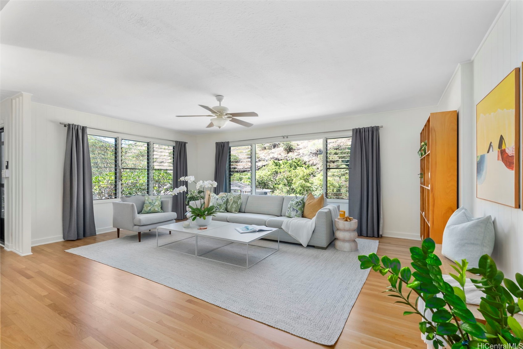Welcome home to your peaceful retreat! This is the kind of home you’ve been waiting for. Situated in a sought-after neighborhood and tucked away on a quiet street with only six homes. This charming East Honolulu / Waialae Nui Valley residence is surrounded by lush landscaping, with space for a gardening enthusiast to plant trees, grow vegetables, or simply relax among nature. Wake up to the sounds of birdsong in the morning, and in the evenings, enjoy the mountain landscape through the large living room window, bathed in golden-hour light. Take in the picturesque views of the mountains and greenery from every room in the home, and feel at ease. Inside, this single-level home shows beautifully with thoughtful updates throughout, blending comfort and style. The peaceful setting feels like a true escape, yet is just minutes from Kahala Mall, Ku’ono Marketplace, and quick freeway access for easy commuting. A rare opportunity to own a home that combines serenity and convenience with the best dining, shopping, and amenities Kahala has to offer. This home provides not just a residence, but an easy, comfortable lifestyle, and room to grow.