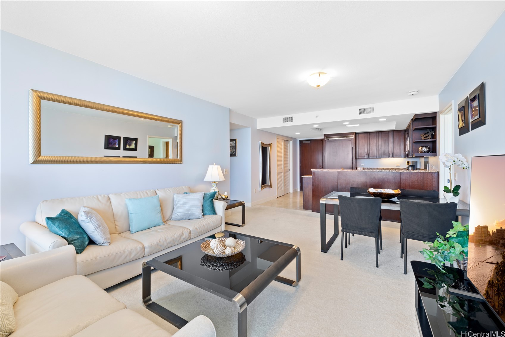 Welcome to The Watermark – Unit 1603 Step into this beautifully appointed mid-floor 2-bedroom, 2-bath residence, featuring two dedicated parking stalls in a secure garage. Floor-to-ceiling windows frame expansive views of the Pacific, city skyline, and Ala Moana harbor — a perfect blend of tropical charm and urban elegance. Enjoy your morning coffee or unwind at sunset on the spacious lanai, where ocean breezes and golden skies create the perfect island backdrop. This thoughtfully designed unit offers not only comfort and style, but also the option to be sold fully furnished, making your move-in seamless and stress-free. The Watermark is known for its resort-like amenities: 24/7 security, a professional and attentive front desk team, and impeccably maintained grounds. Stroll through the lush tropical gardens, relax by the infinity-edge pool, or recharge in the open-air fitness pavilion. Tucked away in a quiet, park-side setting at the edge of Waikiki, yet just minutes from world-class beaches, shopping, and dining, Unit 1603 offers a rare combination of tranquility and convenience — a true island retreat in the heart of Honolulu.