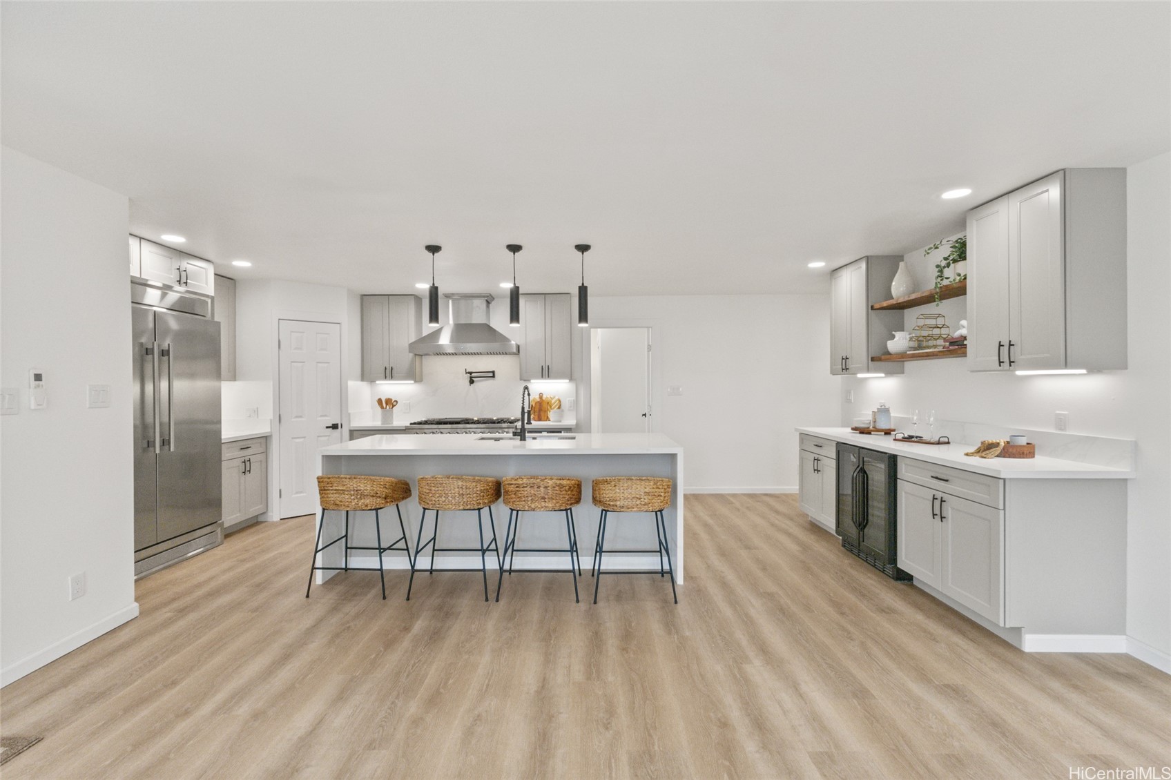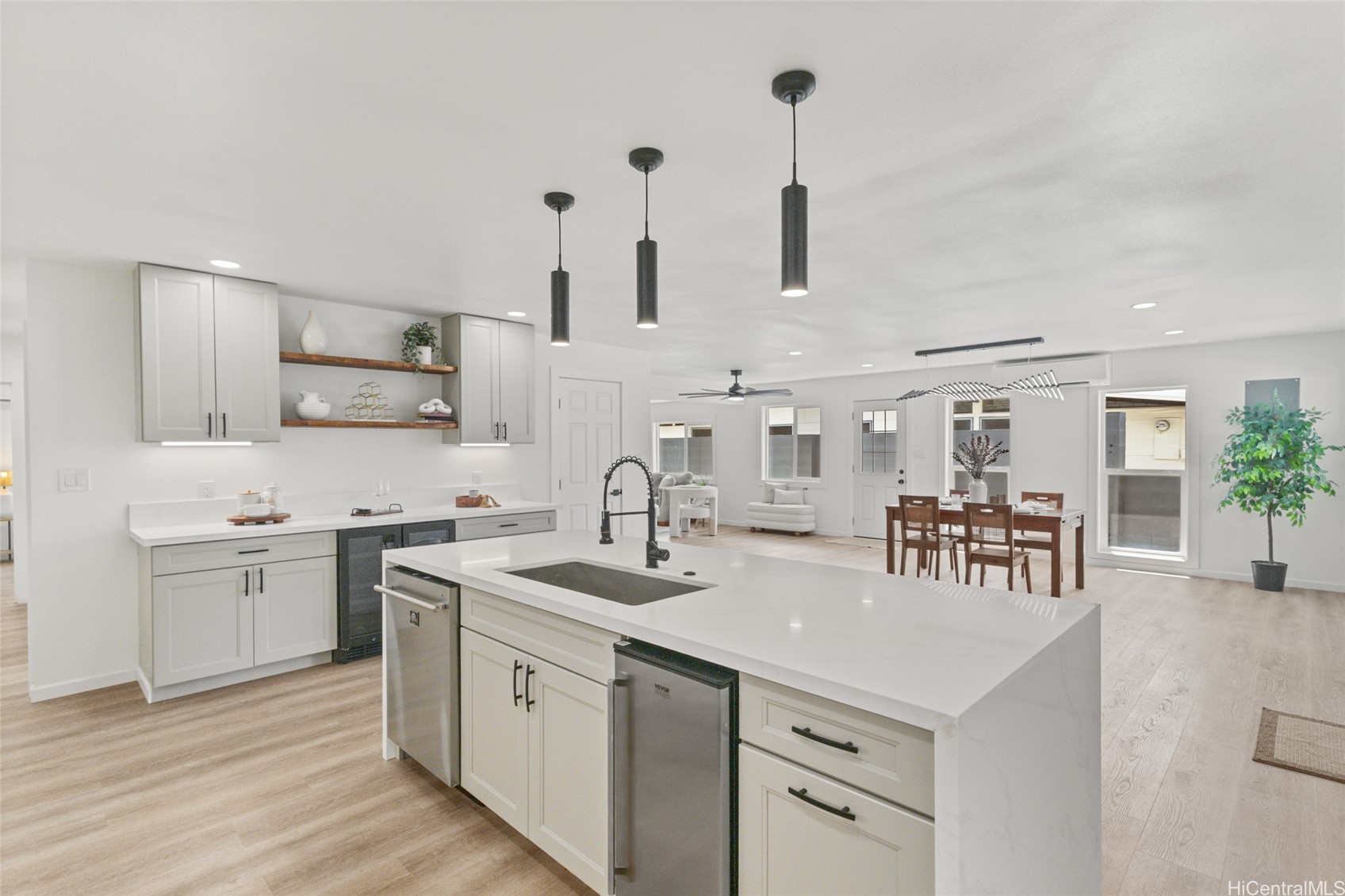 Wonderful location on lower Hahaione Valley near schools, shopping, beaches, parks, hiking, close to town. This tastefully updated home boast 3 br, 2 bath with an office/den that could also be used as a 4th bedroom if needed. The large open living spaces flow seamlessly throughout the kitchen dining and living room. Enjoy new shaker cabinets, quartz counters, and luxury vinyl plank flooring. The chef inspired kitchen has so much to love, from the duel fuel 48 in double oven with 6 different (gas) burners to the oversized fridge, to the wine fridge, or even the ice maker, and don't forget the corner pantry, truly an entertainers dream. The fully fenced enclosed yard is low maintenance and even has its own working pond with a waterfall.