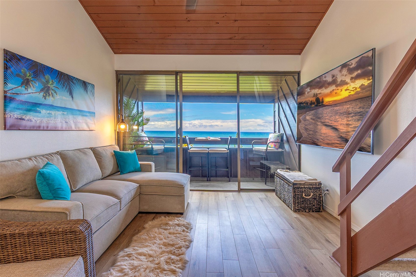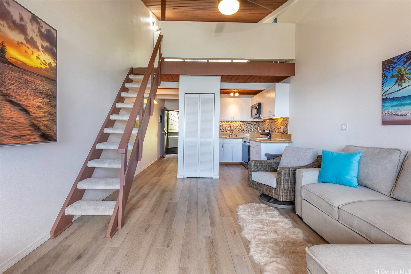 Live life like you're always on vacation, just steps from the ocean. Perched above Kaaawa’s coastline, Makaua Village #526 offers a rare chance to own a 1BR-style Loft-Studio condo with panoramic ocean views from one of the highest vantage points in the community. This spacious 537 sq ft unit (largest of its kind) features soaring vaulted ceilings, vinyl plank flooring, new carpet installed upstairs, and clear pride of ownership. Includes one assigned parking stall. Pet-friendly community with pool, party pavilion, car wash station, and lush mountain surroundings. Steps to the water and just around the corner from the iconic Crouching Lion trailhead—famous for its sweeping views right above the complex. Minutes to the newly reopened Crouching Lion Restaurant, Kahana Bay, and endless beaches. Easy drive to Kaneohe, Laie, and BYU-Hawaii. Turn-key and flexible—ideal as a home, escape, or investment. 3D virtual tour available. Book your showing today!