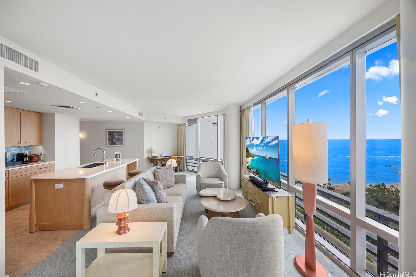 Renovation completed in Jan 2026!! Enjoy luxury living at Ka La'i Waikiki Beach, LXR Hotels & Resorts Hotel/Condo! (former Trump International Hotel Waikiki) This 2 bedroom comes fully furnished and has desirable ocean views and just finished interior renovation! Top notch amenities include infinity pool, concierge, valet parking, and a full service spa. Included in purchase are upscale appliances, granite counter tops, and travertine tile flooring.