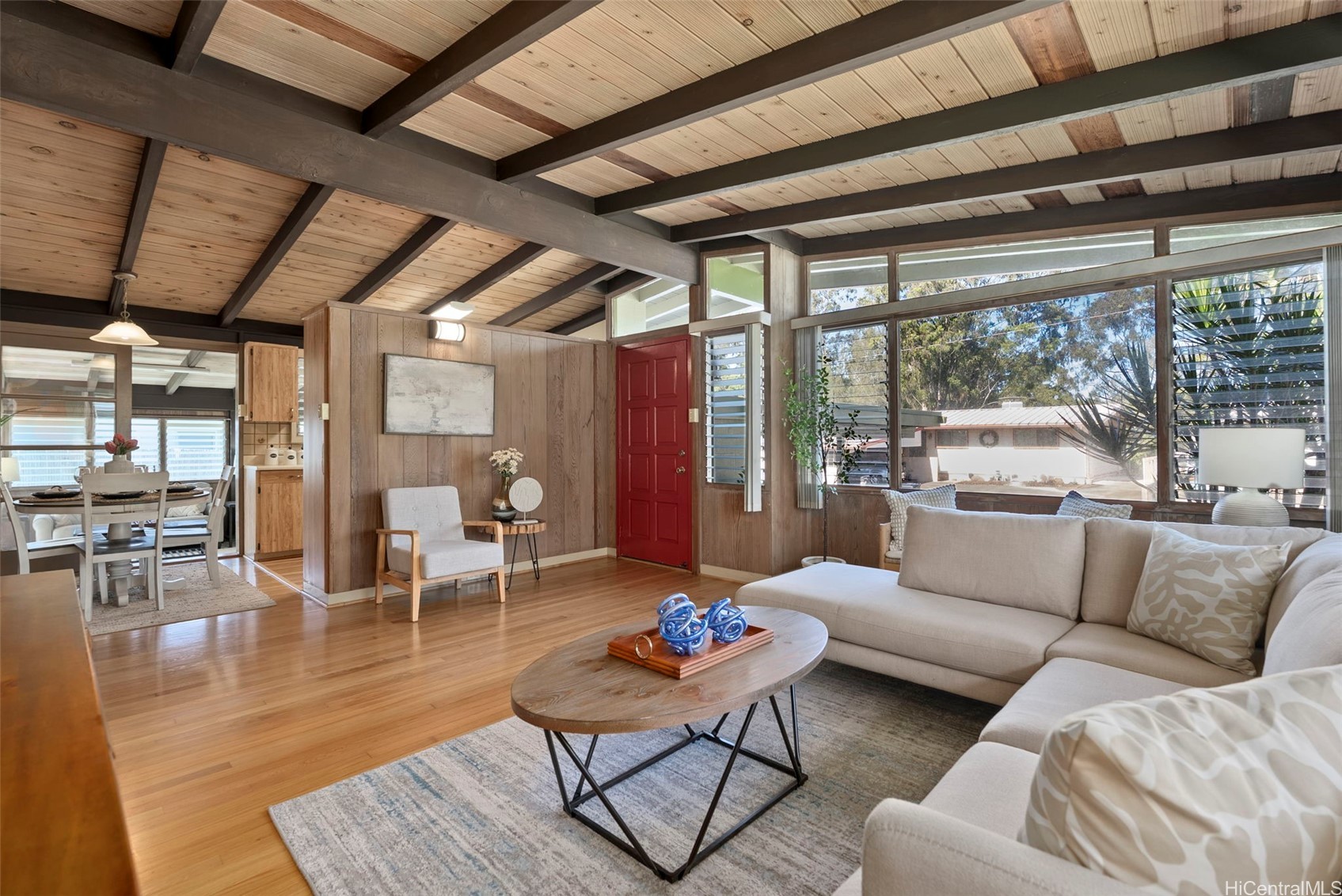 NEW LISTING! Gorgeous, move-in-ready 3 bedroom, 1.5 bath home near the lake in Wahiawa. This classic kamaaina charmer sits on a peaceful side street and is being offered for the first time. Set on a prime mostly level lot, the home has been lovingly maintained and features beautiful original hardwood floors and redwood walls. A spacious extension adds flexibility for a family room, home office, or entertaining space. Recent improvements include a freshly painted exterior, serviced split AC units, updated fixtures, newer washer and 9-year-old roof. The property also offers large storage areas in the carport and plenty of grassy yard space for pets and children. Enjoy cool breezes, quiet surroundings, and convenient access to Wahiawa town, restaurants, parks, schools, and Schofield. Do not miss one of the best values in Wahiawa!