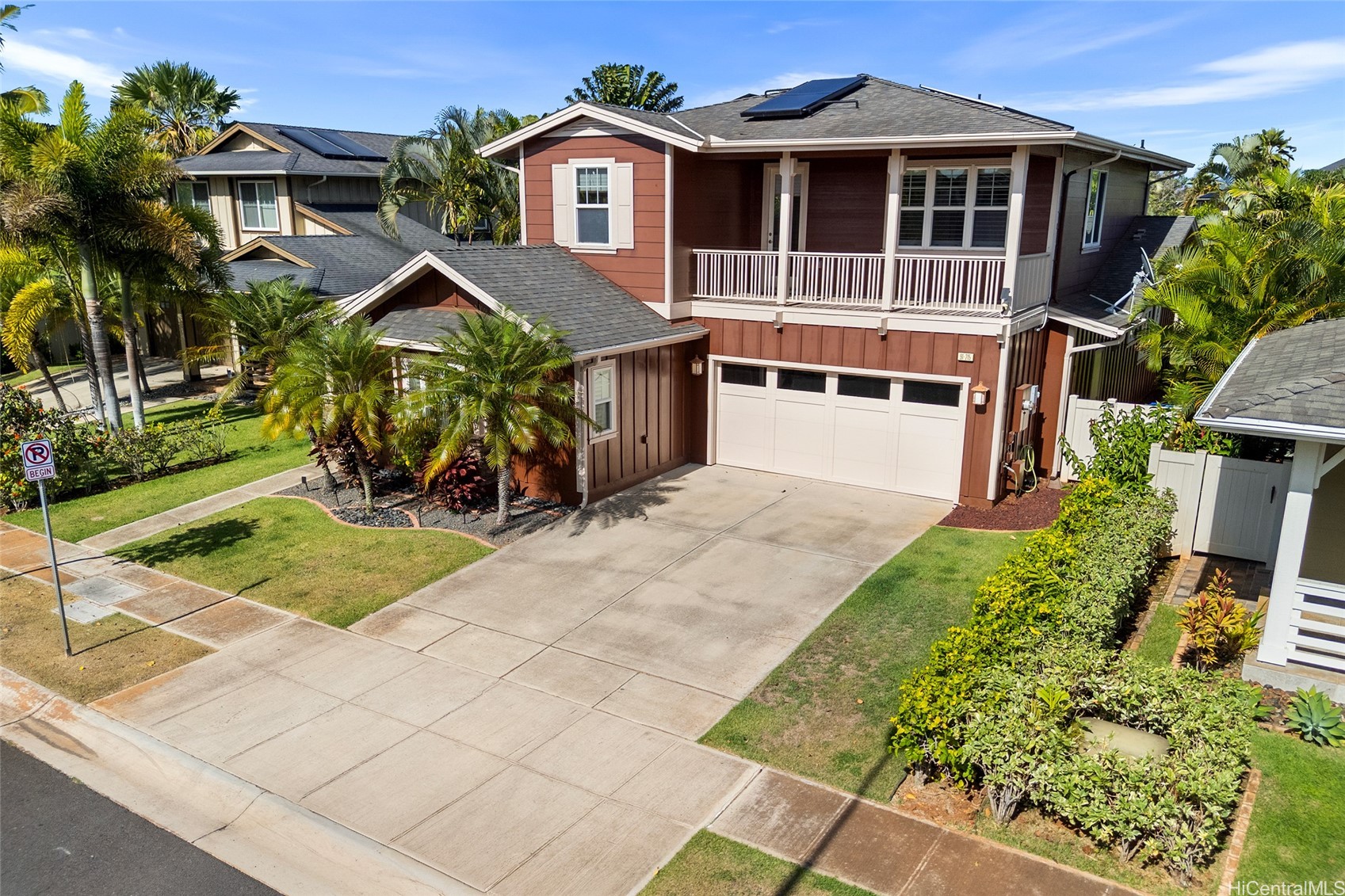 Escape to your own private oasis in this 4-bedroom, 3.5-bath home in the desirable Ewa by Gentry Haleakea neighborhood. This energy-efficient property features 23 owned PV panels, two Tesla batteries, solar water heater, and water filtration system, ensuring comfort and savings. Stay cool year-round with central AC. Enjoy the perfect blend of indoor and outdoor living with a beautifully covered lanai and a spacious backyard. A separate 1-bedroom, 1-bath casita offers a private space for guests or a home office. Located close to several nearby parks. This home combines modern amenities with a serene island lifestyle. Sold as-is.