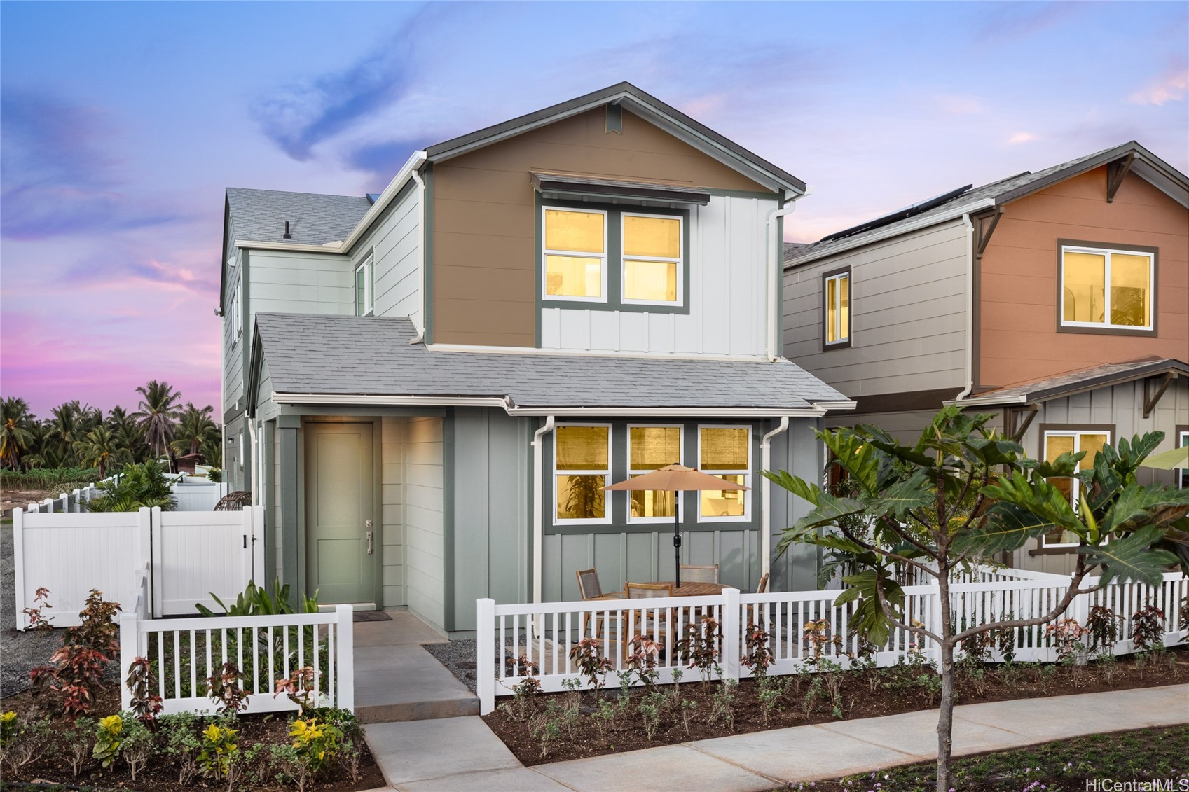 Award winning new construction, this 3 bed, 2.5 bath home with additional family room has 9' ceilings, Designer white shaker cabinets, Quartz counters, Kohler fixtures and so much more! Energy saving features include Central AC, Seer2 (16+), 80 gallon solar hot water, spray foam insulation, Gutters, Fencing, LED lighting, Digital thermostat, Insulated garage door, EV ready, Low-E vinyl windows and Energy star stainless steel appliances and Luxury Vinyl Plank throughout. This home is complete and available now! Seller is offering a 3% CREDIT to be used for closing costs, buy downs, points/interest rates when financing through Gentry Home Loans. Our Ka'ulu community is in a fabulous location, close to beaches, restaurants, shopping, entertainment the freeway and so much more. Come and check out all our VIP features! Our model homes are open from 10-4:30 Tues-Sun, and 12-4:30 on Mondays. (Pictures are of model home, actual home interior appointments may vary from pictures)