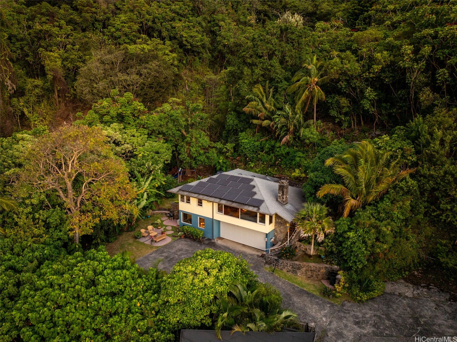 Experience the rare chance to own a private retreat that radiates the charm of old Hawaii, in beautiful Manoa. Situated on a sprawling 39,487 sq. ft. lot at the end of a private road, this exquisite 3-bedroom, 2-bath home offers peaceful seclusion while being just minutes from Manoa Market Place, the University of Hawaii, Waikiki, and more. Thoughtfully upgraded & maintained, this home offers flexible living options, including a 3/1 upstairs with the potential for a 1/1 guest suite with a separate entrance downstairs. Enjoy panoramic mountain-to-Waikiki views, 19 owned PV panels, an EV charger, a remodeled kitchen with a gas range/oven, and updated bathrooms. Original oak floors have been lovingly refinished, complemented by travertine, ceramic, and engineered wood in other areas. Restored details include double-hung windows, wooden screens, and mahogany stacking doors that open the dining area to a lush, outdoor lanai, blending indoor-outdoor living. The centerpiece moss rock fireplace adds warmth to the living and family room. Complete with an oversized garage with room for possibly three cars, this one-of-a-kind home is a must-see. Watch the video and schedule your tour today!