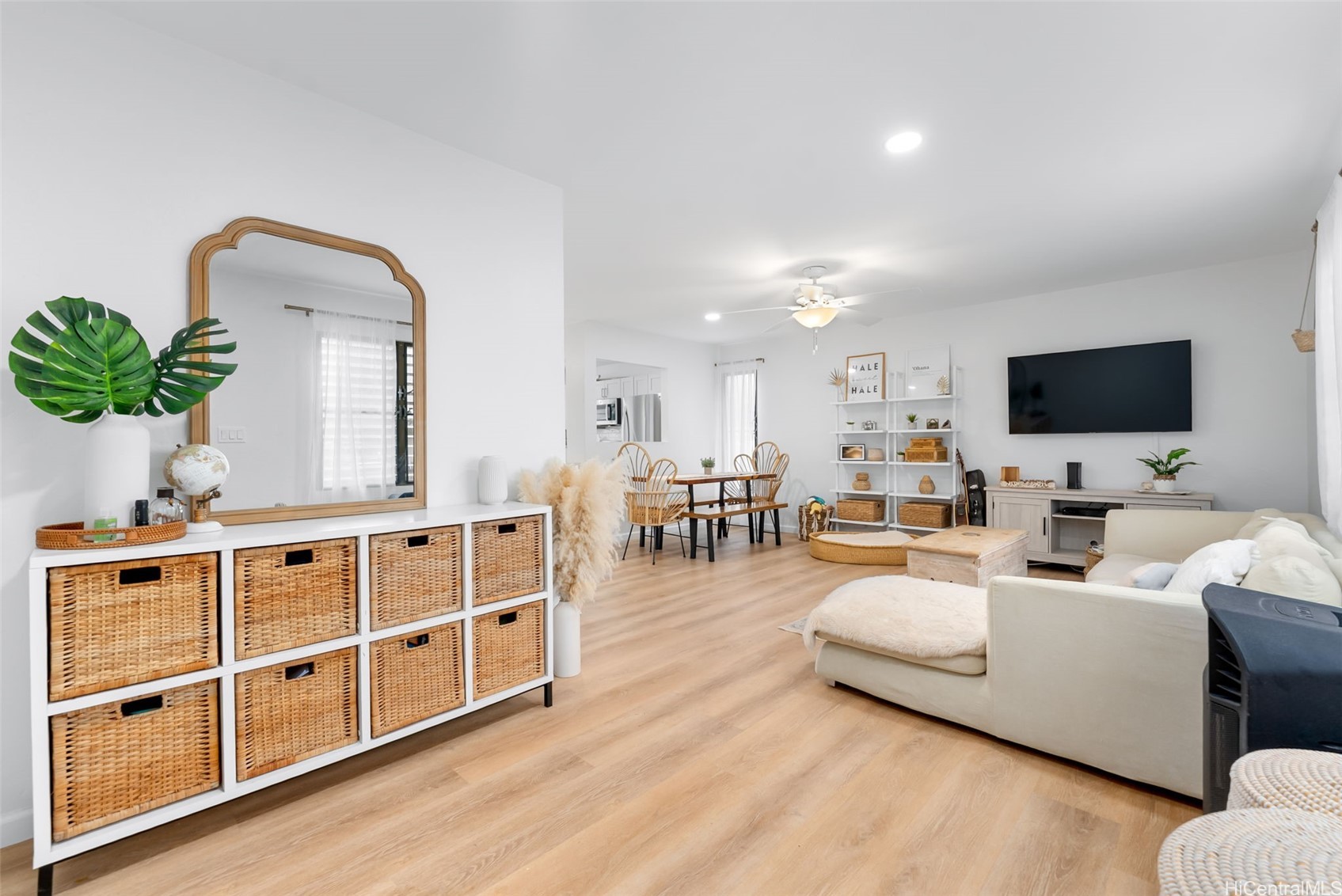 Property Summaryコオラウ山脈を背景に佇む2階建ての角地タウンハウスは、3ベッドルームと2.5バスルームを備え、細部までこだわって改装されたインテリアが特徴です。メインフロアには、プライベートな屋外スペースへと続くオープンなリビング・ダイニングエリアがあり、2階には快適なベッドルーム3室とフルバスルーム2室を備えています。近年の改装により、室内の仕上げが一新され、モダンですぐに入居できる空間となっています。角部屋のため、プライバシーと自然光がさらに確保されています。ショッピング、学校、レクリエーションエリアにも近く、静かな環境と日々の利便性が融合した住まいです。