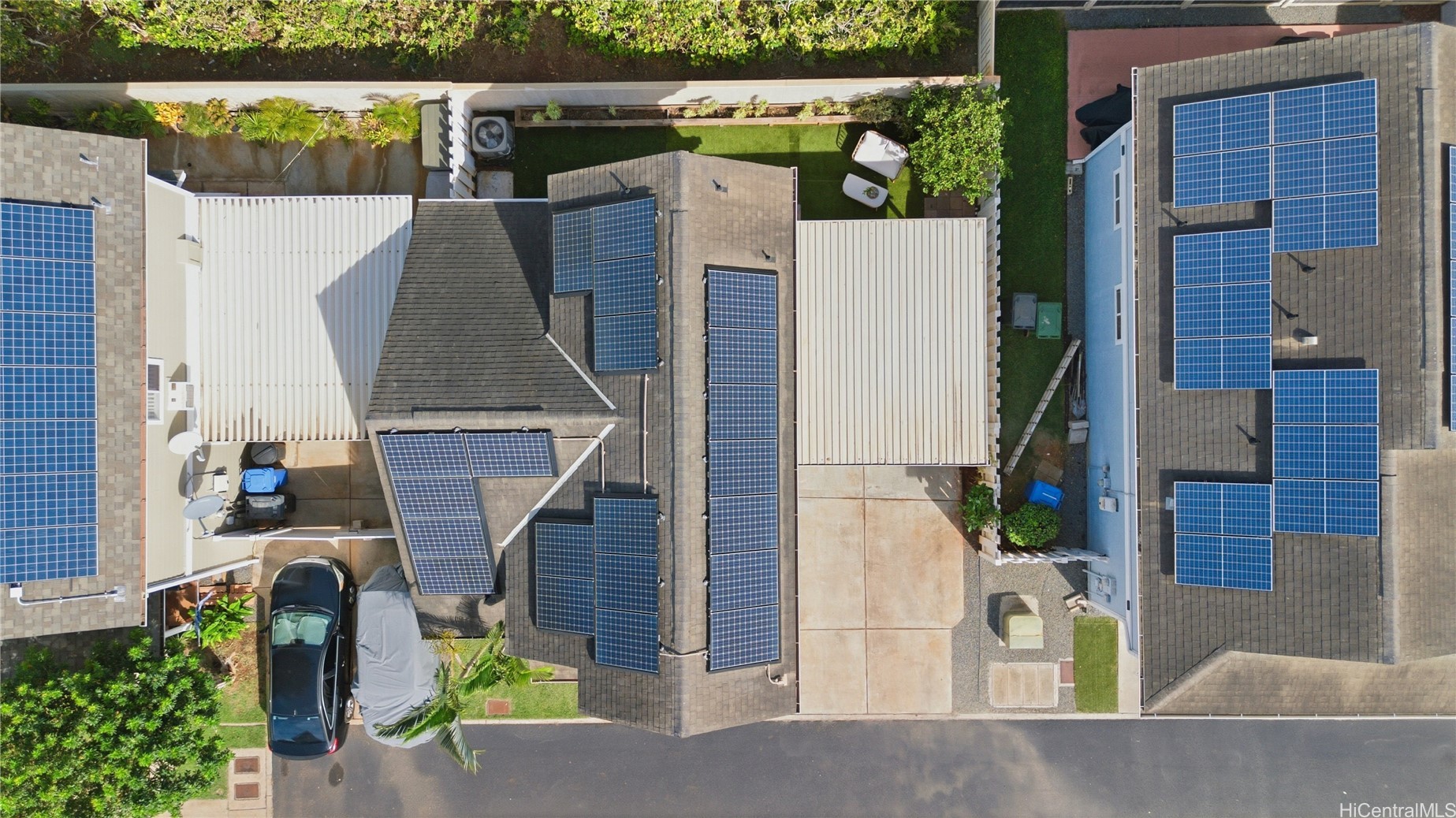 Step into The Lofts at Alii Cove in Ewa Gentry—where comfort, style, and energy efficiency meet! This beautifully maintained 2-bedroom, 2-bath home features a spacious layout with vaulted ceilings, central air conditioning, and sleek vinyl laminate flooring. The primary suite with a full ensuite bath is conveniently located on the first floor, while the second bedroom and full bath offer privacy upstairs. Enjoy the convenience of a 2-car carport plus two additional driveway spaces, along with guest parking nearby. Positioned across from a lush green open space, this home offers a peaceful setting in a thriving community. Modern upgrades include updated appliances and a powerful energy-efficient setup with 21 owned photovoltaic panels and 2-Tesla Powerwall batteries—helping you save on utilities. Located in the heart of Ewa, you're just minutes from shopping, dining, entertainment, banks, the post office, and public transportation. BONUS: This property comes with a VA assumable loan at an incredibly low 2.25% interest rate. This is an exceptional opportunity for qualified VA buyers. Don’t miss your chance to own in one of Oahu’s fastest-growing neighborhoods!
