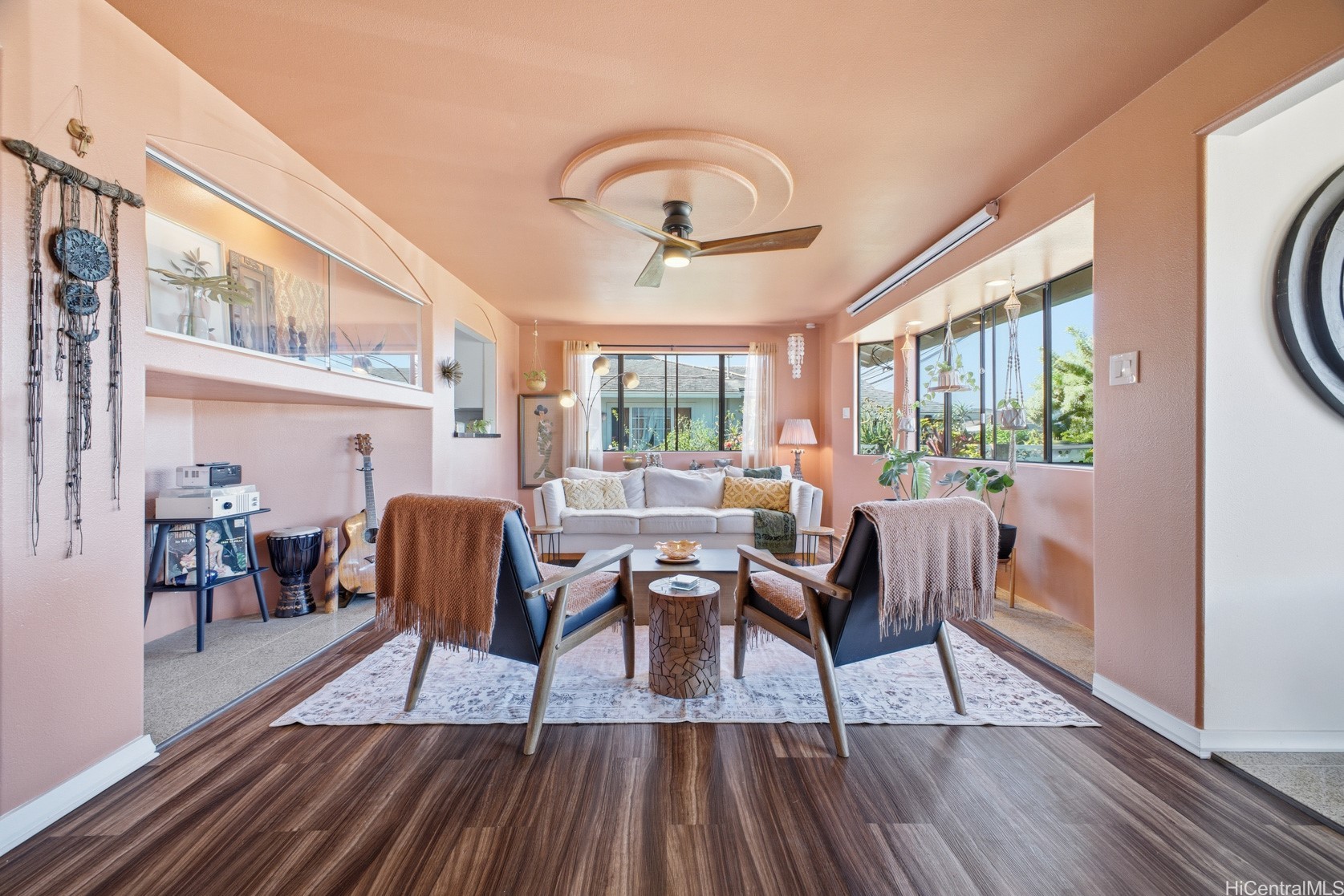 Welcome to paradise! This one-of-a-kind property in Whitmore Village, just minutes from Oahu’s famed North Shore, offers a rare blend of serenity, style, and island convenience. Thoughtfully renovated by an interior designer, this stunning single-family home features 4 bedrooms and 2 bathrooms, along with a 2 bed 1 bath Ohana complete with a kitchenette—ideal for multi-generational living, guests, or rental income. Step inside to discover beautifully curated interiors designed for both comfort and sophistication. The home showcases spa-like bathrooms with modern finishes that bring a touch of luxury to everyday living. A new roof and PV system add lasting value and peace of mind. The primary suite features an ensuite bath, dual closets and tranquil views overlooking the lush backyard and beyond. Enjoy outdoor living on the large covered lanai and grow your own fruits & veggies in the gardening beds. The backyard oasis, complete with a mature lychee tree, backs up to a serene wooded area—no rear neighbor for ultimate privacy. Experience the charm of a classic plantation town, while being just a short drive to world-famous beaches, surf spots, and the vibrant North Shore lifestyle.