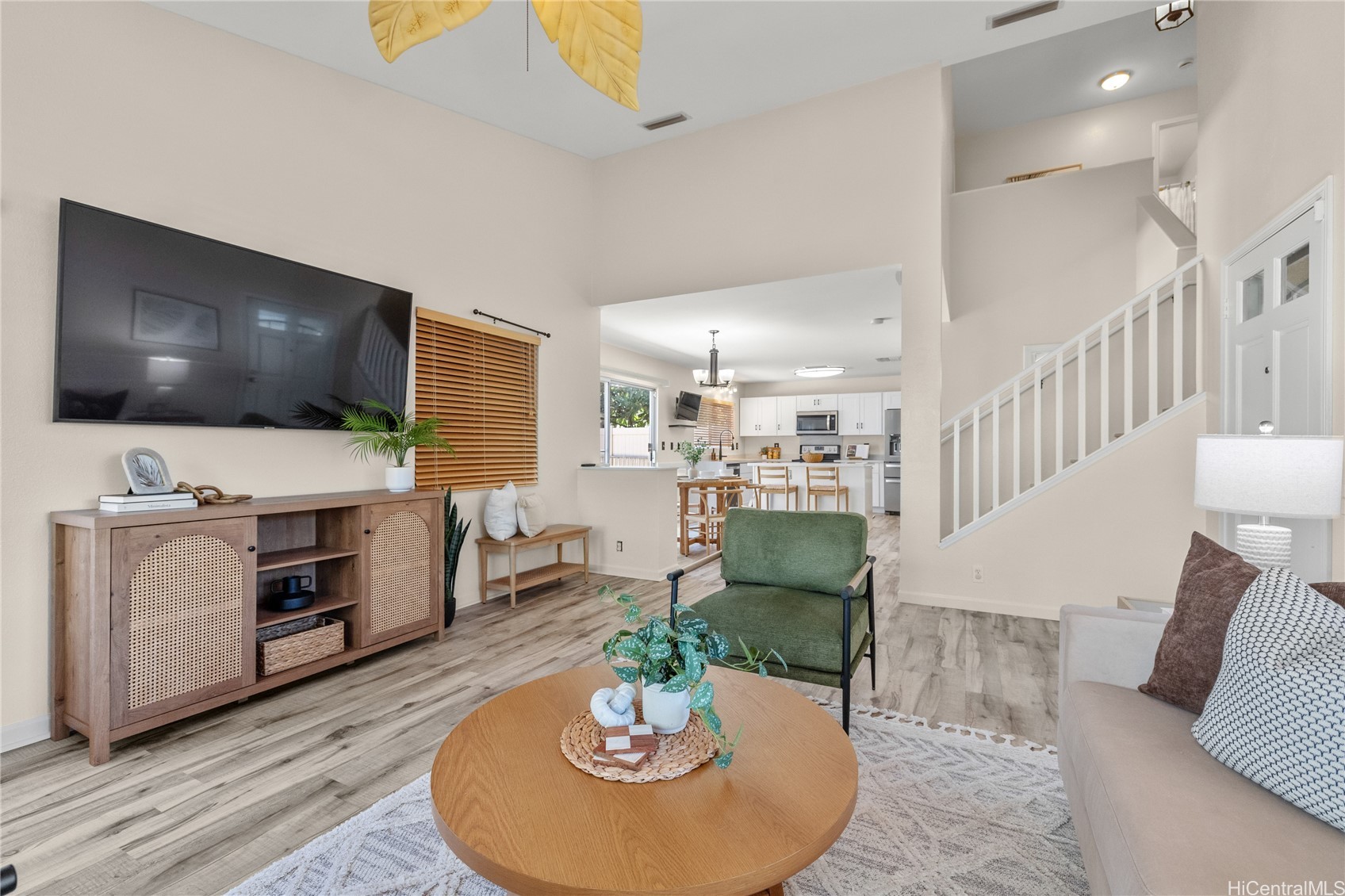 Discover elevated island living in this beautifully renovated two-story home in the desirable Ewa Gentry Prescott community. Every detail is designed for modern comfort—from the sleek, open-concept kitchen perfect for gatherings to the new central A/C that keeps you cool year-round. A 27-panel leased PV system helps lower energy costs, while major upgrades—including a new roof, remodeled kitchen, updated flooring, new gutters, and a new garage door—provide lasting peace of mind. Enjoy a spacious, private yard with room to relax, play or entertain, plus a large storage shed for your outdoor essentials. Best of all, there’s no maintenance fee—offering exceptional value and convenience. Close to schools, parks, shopping, dining, golf courses, and military bases, this home blends style, comfort, and everyday ease. Come see why this could be your perfect place to call home.