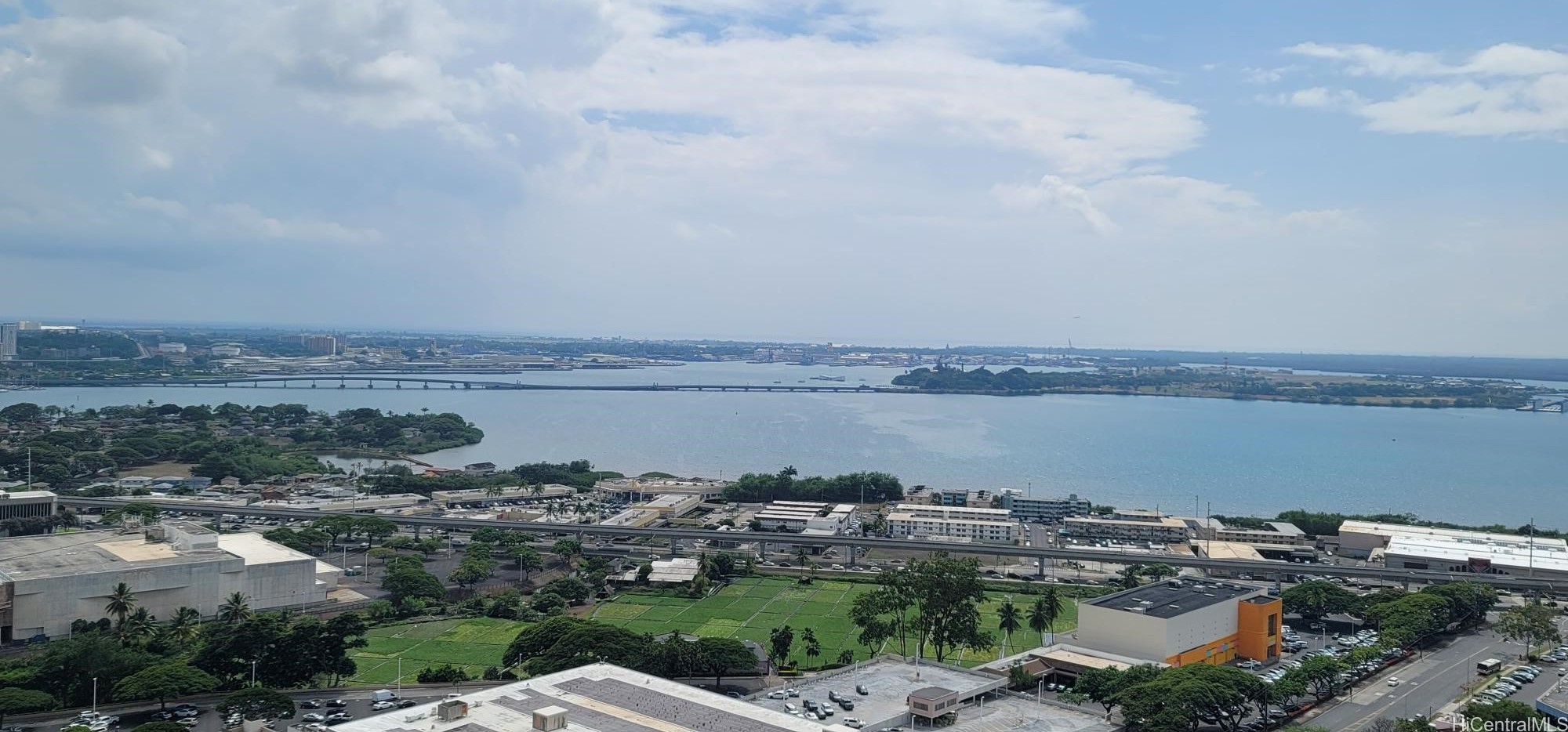 High floor apartment with panoramic view from east to west...ocean, Pearl Harbor, mountains, sunrise, sunset...all from large lanai off bedroom & living room! This fabulous view will be the reward after renovating this fixer-upper priced well below market & tax assessed value! Great opportunity to build 'sweat equity!' Features: washer/dryer in unit & outside storage locker. Popular, pet friendly, secure building with easy freeway access, across PearlRidge Mall; near schools, restaurants, medical facilities, military bases & the Skyline rail. Amenities: pool, BBQ & rec areas, resident manager.