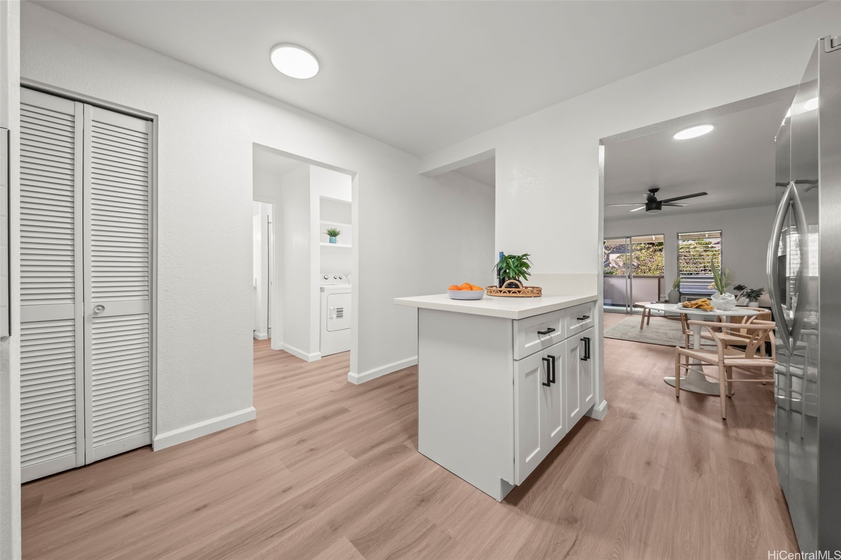 Welcome home to this beautifully renovated 2-bedroom, 2-bath residence in the highly desired College Gardens community. This open and inviting home showcases a modern layout that blends style and functionality. Features include luxury vinyl plank flooring throughout, sleek stainless steel appliances, modern fixtures, and tasteful finishes that create a warm and contemporary atmosphere. Enjoy year-round comfort with a window AC unit and natural light that fills the interior. This move-in-ready home offers the convenience of one assigned parking stall and is ideally located near freeway access, shopping centers, and restaurants. Experience the ease of modern living in a central Pearl City location that provides both comfort and accessibility.