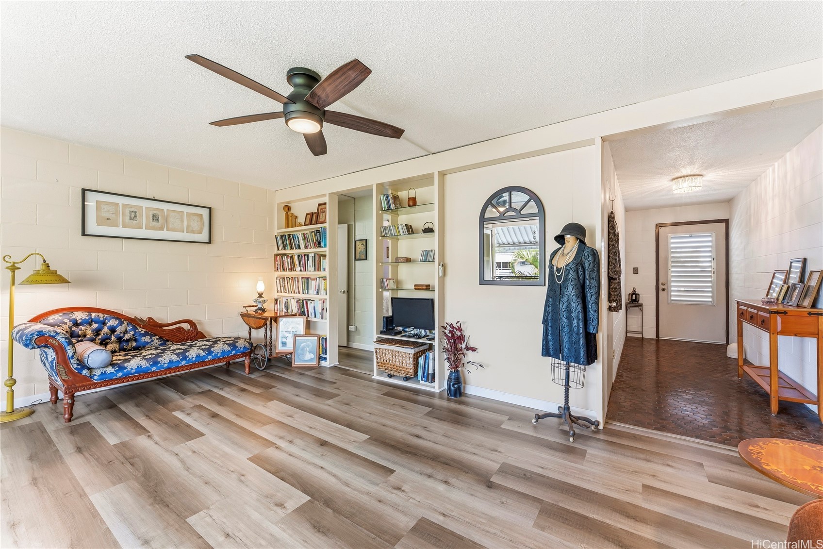 Discover this tropical oasis in the heart of Honolulu—beautifully landscaped with lush greenery and a serene saltwater pool at its center. Conveniently located near Safeway, Ala Moana Shopping Center, UH, schools and hospitals, this top-floor residence (walk-up) offers cool breezes and seamless indoor-outdoor living with sliding louvered doors opening to a spacious lanai. This charming home feels like a cottage and features luxury vinyl flooring (2024), a new range (2024), new water heater (2023), an upgraded kitchen window for enhanced airflow and much more. Enjoy a cup a coffee in the morning on your private & quiet lanai surrounded by lush palms or a glass of wine overlooking the pool when it is lit in the evening ... Simply magical! You will appreciate the unit’s rare, extra-wide entryway with lots of shelving and closet space. Pet-friendly, a great resident manager, and community laundry—this home combines tropical tranquility with urban convenience. 100% HURRICANE INSURED. VA APPROVED.
