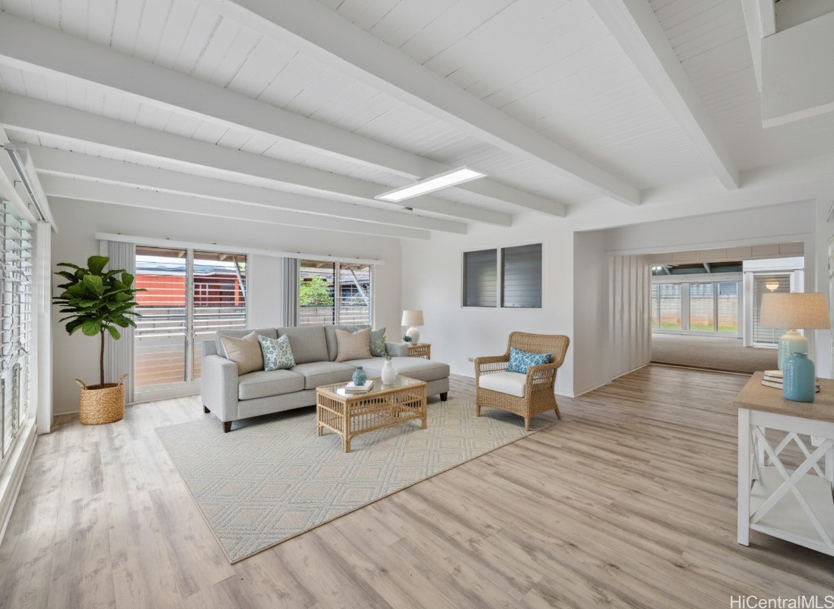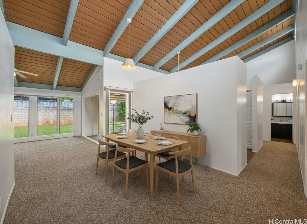 This 3-bedroom, 2-bath single-level home offers comfort and space. The open layout features high ceilings in the kitchen and dining area, creating an inviting atmosphere perfect for gatherings. Enjoy fresh interior paint, a 2-car carport with additional driveway parking, and a private backyard ideal for entertaining or relaxing outdoors. As part of the Mililani Town Association, residents have access to 7 recreation centers, pools, parks, sports courts, and scenic walking paths. Conveniently located near shopping, schools, and neighborhood parks. *Some photos have been virtually enhanced with staging. First Open House Sunday, November 16th, 2-5 pm.