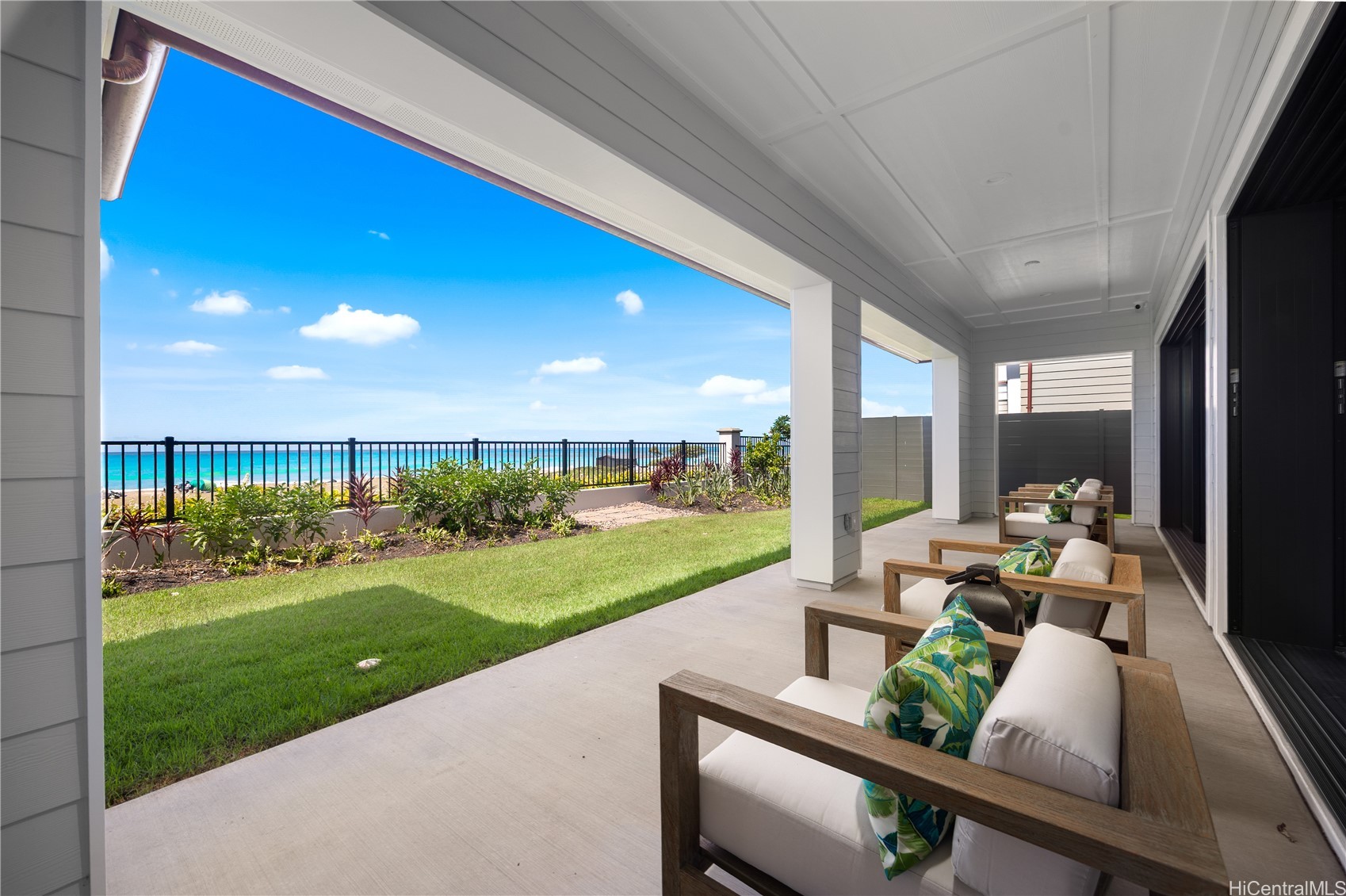 Embrace single-level resort living in this beautifully crafted new construction home, offering over 2,400 square feet of thoughtfully designed interior space. This elegant three-bedroom, three-and-a-half-bath residence features a spacious great room, a covered lanai perfect for indoor-outdoor living, and a two-car garage—all thoughtfully designed for comfort, style, and connection. Enjoy breathtaking ocean views and a collection of premium features, including central air conditioning, an 80-gallon solar water heater, EV charger readiness, and accommodations for a photovoltaic solar electric system. The chef’s kitchen showcases a curated selection of high-end appliances, including a 42” built-in Sub-Zero refrigerator, Wolf stainless steel induction cooktop, convection oven, microwave with drop-down door, and an Energy Star-certified Bosch dishwasher. Meticulously landscaped outdoor spaces with automated irrigation offer a beautiful backdrop for daily living and exceptional entertaining. Kekainani at Hoakalei | One of the final 32 luxury residences. Ilima - 75.10 A (Reverse) floorplan. $20,000 Option Credit available to buyers, applicable toward options or upgrades.