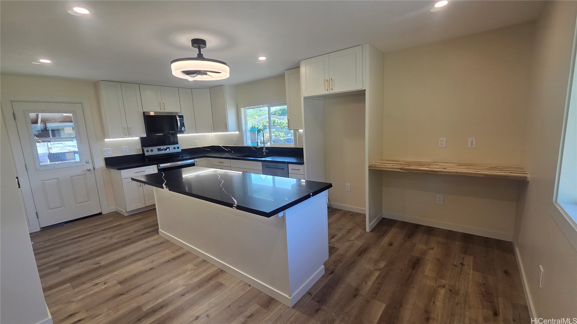 Discover this beautifully remodeled turn-key single-level home nestled in the lush and breezy Wahiawa community. Situated on a desirable corner lot, this charming 3-bedroom, 1-bath residence has been thoughtfully upgraded to provide comfort, convenience, and modern style all while preserving the warmth of classic island living, this home is the perfect opportunity for those seeking peaceful living without compromising convenience. Step into an inviting open layout featuring a fully renovated kitchen complete with white soft-close cabinetry, sleek quarts countertops, stainless steel appliances, and a functional center island illuminated by tack lights, elegant ceiling fan and lighting. Contemporary finishes blend seamlessly with cozy home comforts, creating a space perfect for entertaining or unwinding. This home’s functional floor plan offers updated bathrooms with double sinks touch button mirrors and excellent light throughout, located just minutes from the stunning Wahiawa town Botanical Garden, schools, shops, dining, and major commuting routes. Tax records differ from house bedroom size.