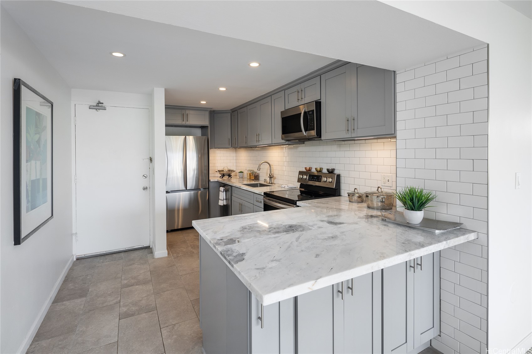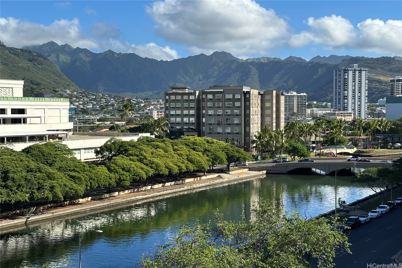 Panoramic Mountain, Valley, and Water Views await you! Located just one block from the beach, this well managed, boutique building has curb appeal, unique architectural features, and is convenient to everything Waikiki has to offer! The main living space is a generous 17' by 20' feet in size with large oversized sliding doors allowing you to enjoy cool, shady, breezy afternoons in true Hawaiian style. Apartment 708 is a corner unit and has been completely remodeled with new ceilings, cabinetry, appliances, flooring, fixtures and more! There's even AC for those occasional muggy days! The primary bedroom features an ensuite bath and is privately located in the back of the home. Marina Towers is located on a restricted road fronting the canal and it's amenities include a Heated Salt pool, BBQ, attractive Recreation Area, Workout Area, Locked Bicycle, Surf board and Storage rooms as well as a car wash and an attentive resident manager. A covered parking stall and storage space is included in the sale. Additional motorcycle/moped parking on site but subject to availability. Marina Towers is fully insured with a reasonable maintenance fee. Book your showing today!