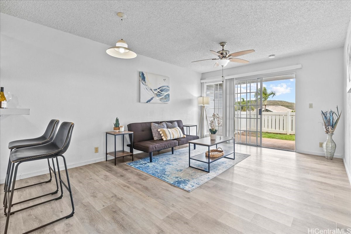 Seller is offering a $5,000 closing credit! Welcome to Makakilo Cliffs – where comfort meets convenience in this beautifully maintained 2-bedroom, 2-bath townhouse with 2 covered parking stalls and 15 owned photovoltaic (PV) panels for energy efficiency and low electric bills. Perched on the cooler slopes of Makakilo, this home offers refreshing breezes year-round. The open-concept living and dining area opens to a private yard, offering the perfect space for outdoor dining, gardening, or simply unwinding in your own peaceful retreat. The primary bedroom features an en-suite bath and ample closet space, while the second bedroom is ideal for guests, an office, or a growing family. Conveniently located near shopping centers, dining, schools, and freeway access, this move-in-ready unit combines the best of island living with modern comfort and energy-conscious living. Don’t miss your chance to own this gem in a sought-after community!