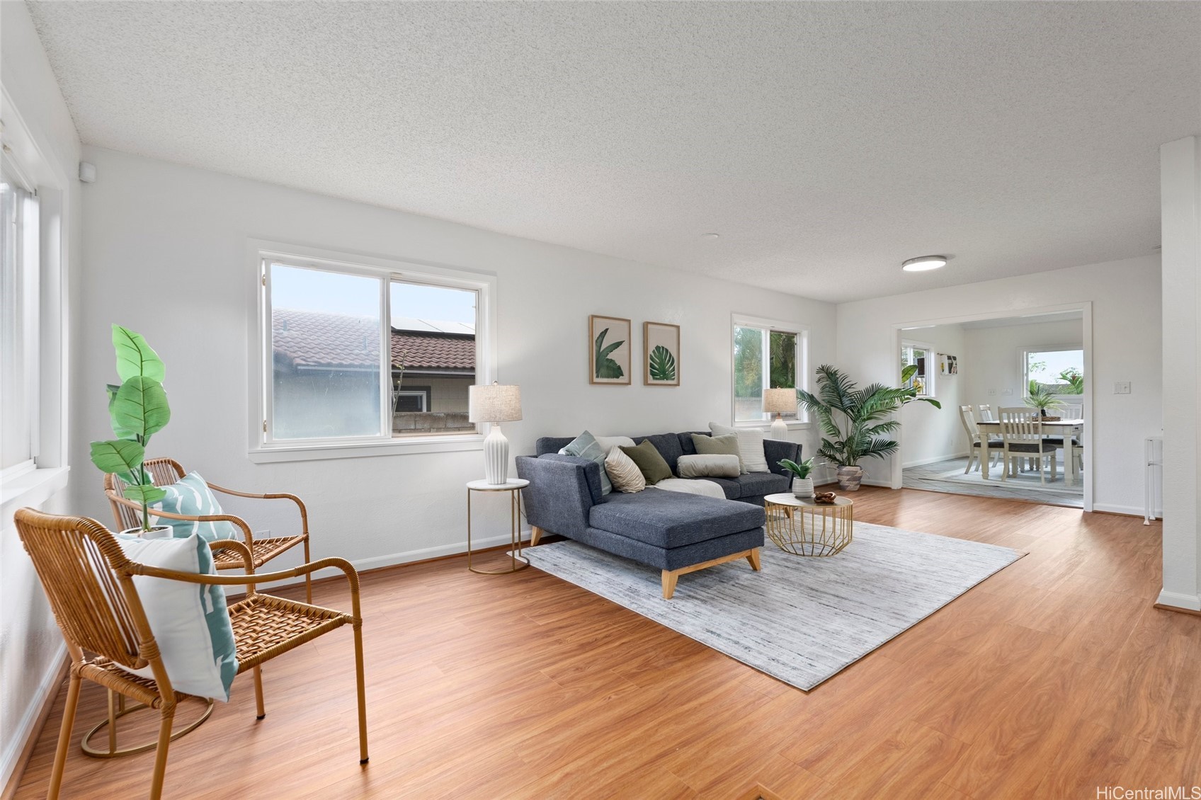 Spacious and breezy two-story Makakilo-Highlands home with just over 2,400 sq. ft. of living space and a functional, flexible layout. Enjoy multiple living areas, great natural light, and a comfortable flow throughout. The home features an owned PV system with battery to keep energy costs low, plus a two-car garage for storage and convenience. The backyard offers room to relax or play, highlighted by a mature mango tree that has produced abundant fruit over the years. Located in an established neighborhood known for cool mountain breezes and a strong sense of community, this property offers comfort, space, and the opportunity to make it your own.