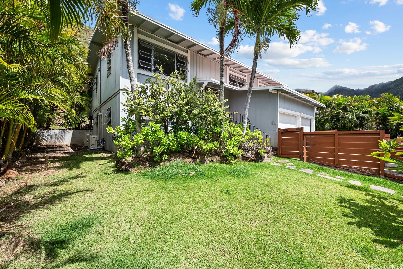 Welcome to the highly desirable lower Hahaione neighborhood. This well maintained home has two bedroom, one bath upstairs and two bedroom, one bath and a den downstairs. Property offers many possibilities for the creative mind. There is a boat parking space on the side of the home. The residence with putting green, a large patio and private backyard is perfect for BBQ and entertaining friends and family. This home has kitchen island, stainless-steel appliances, private home office, walk-in closet, laundry room, two car garage, and split a/c unit in living room and all bedrooms. It's conveniently located near Hahaione Valley Neighborhood Park, Hahaione Elementary and minutes away from Costco, shopping, dining, entertainment, theaters, hiking, beach and all the marina activities that Hawaii Kai offers! Please see virtual tour. One or more photos have been enhanced.