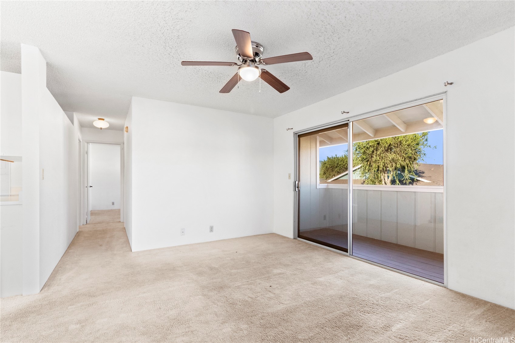 Discover comfort and convenience in this highly desirable upstairs corner-unit townhouse located in the heart of Central O?ahu. This well-maintained 2-bedroom, 1-bath home in Hikino Three offers an inviting layout with plenty of natural light and a private patio-perfect for morning coffee or evening relaxation. Inside, you'll find laminate flooring in the kitchen and bathroom, with soft carpeting throughout the living areas and bedrooms. The home includes an in-unit washer and dryer, and one dedicated parking stall, with ample guest parking available nearby. Ideal for first-time buyers, downsizers, or investors, this property is conveniently located near shopping, schools, restaurants, and freeway access. Enjoy quick commutes to major military bases: approximately 21 minutes to Hickam/JBPHH, 32 minutes to Kaneohe Marine Corps Base, and 21 minutes to Schofield Barracks.