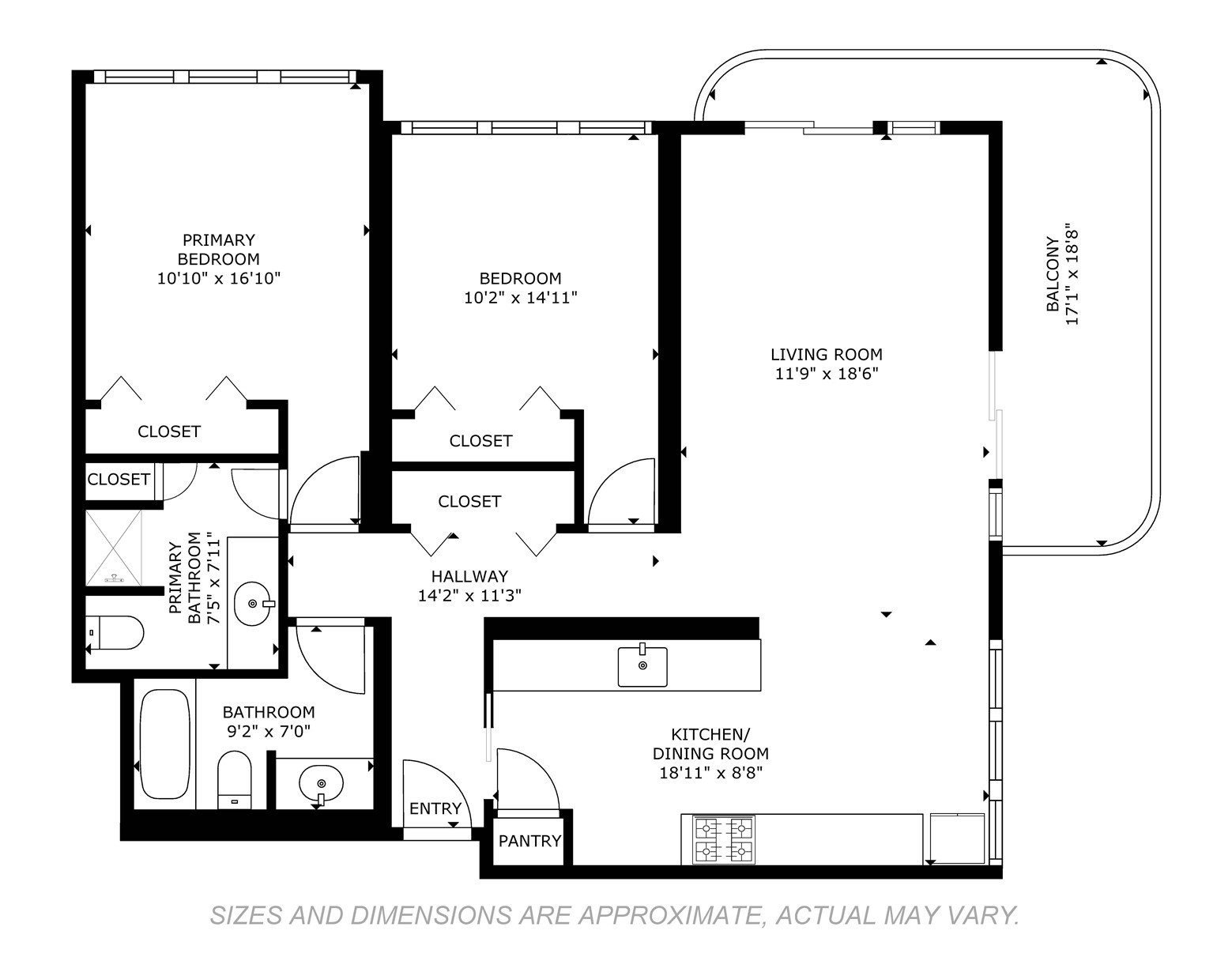 2ベッド/2バスルーム