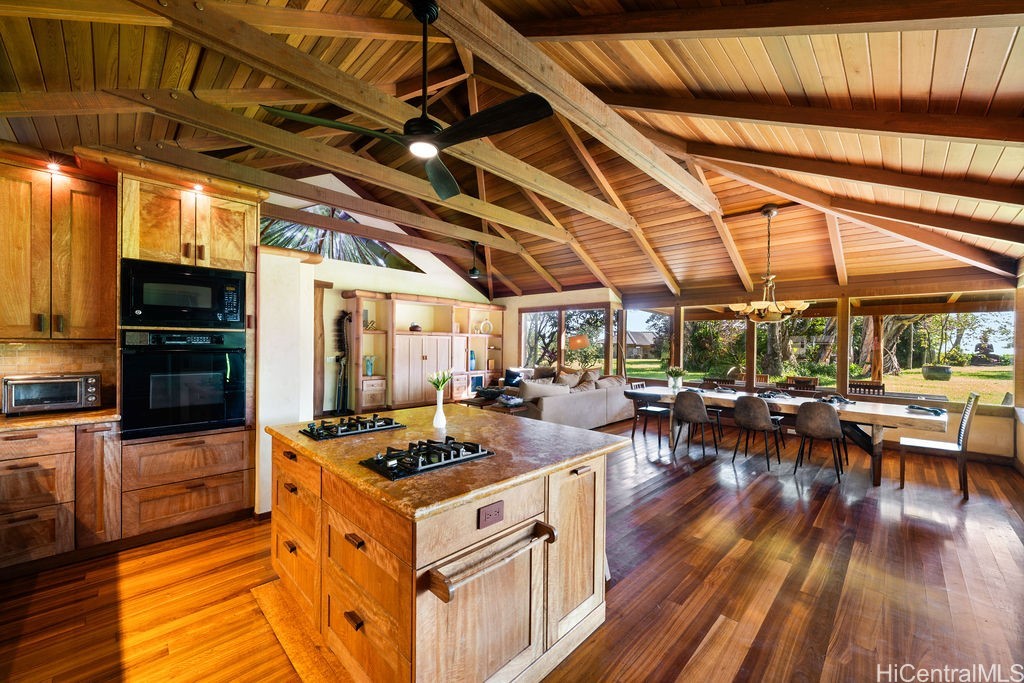 Located on Maui's North Shore and only a 30 min drive from the airport, this property offers a private oasis, irreplaceable natural resources, and panoramic ocean/coastline/waterfall views! This is a perfect generational estate, wellness retreat, or visionary compound! Come tour this double fenced private estate where you will walk through hand crafted 24 foot custom gates to find 6 permitted structures that blend Japanese, Hawaiian and Balinese architectural styles, a yoga studio, an office/garage, an infrared sauna and a custom loft. Take the stone walking path encircling the estate to explore the rainbow eucalyptus forest, paperbark tree grove, and the various trees (cherry, papaya, etc). With a wrap around driveway with parking for 20+ cars, this property is perfect for entertaining family and friends! This property has a 280 foot private well with county water rights, volcanic soil ideal for agriculture, and owned solar with commercial grade infrastructure making it a self-sustainable getaway! Seller has invested millions into the property for custom upgrades/improvements. Do not miss out on this unique property!