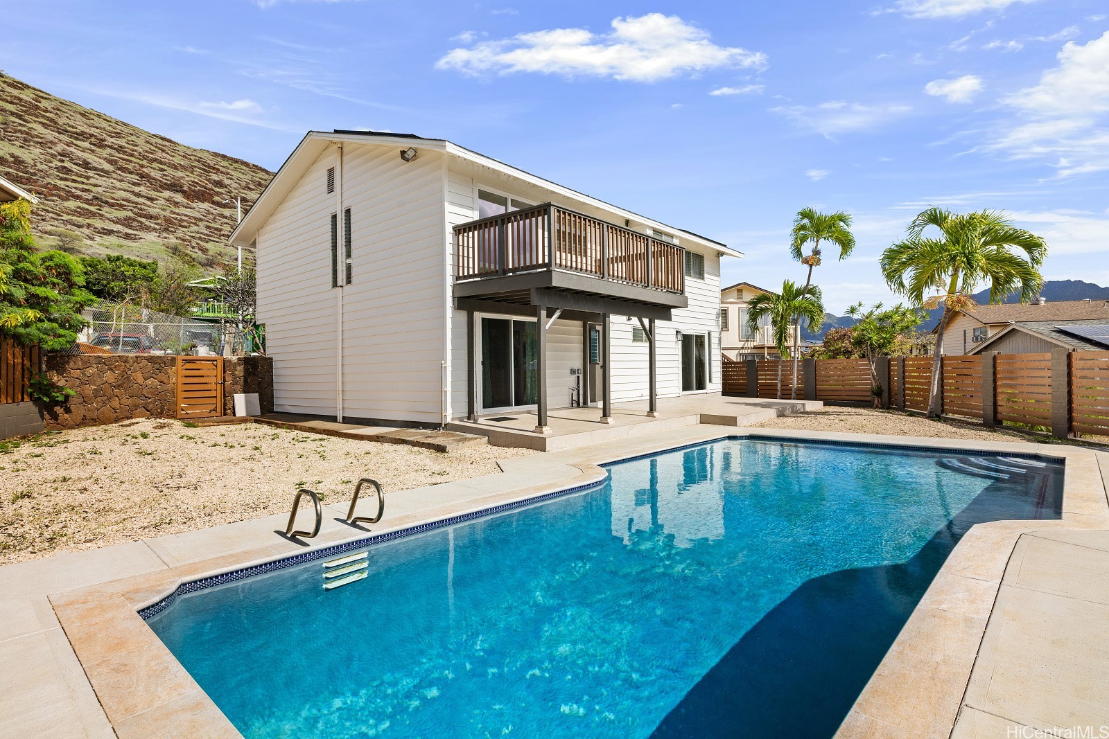 Newly renovated and move-in ready, this spacious 5-bedroom, 3-full-bath home in Lualualei Valley offers an ideal layout for multi-generational living. The home features a bonus room with a wet bar, providing flexible space for extended family, guests, or entertaining. Enjoy indoor-outdoor island living with a private swimming pool, perfect for gatherings and relaxation, along with the convenience of a two-car garage and generous living areas throughout. Conveniently located near schools, Waianae Mall, and beautiful Waianae beaches, this property combines space, comfort, and location—an excellent opportunity to own a move-in-ready ?ohana home in Waianae.