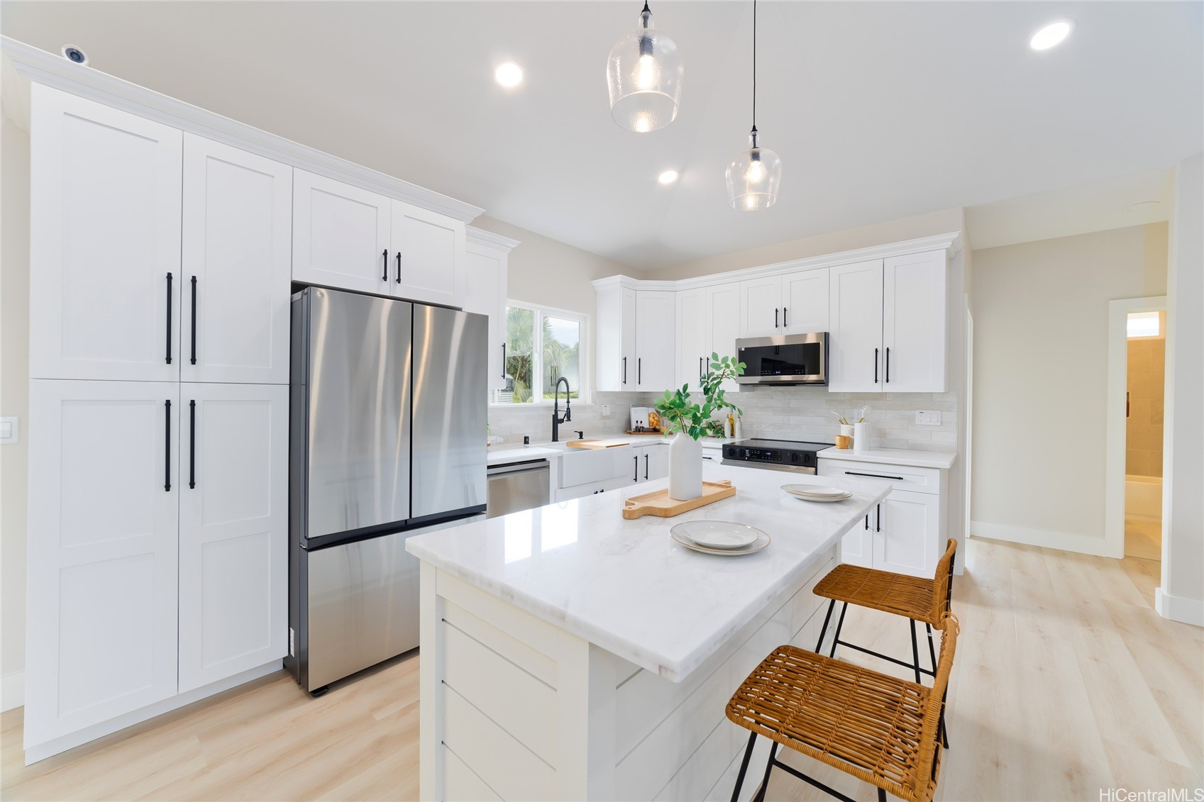 Located just steps away from the natural beauty of the Maku’u Cliffs and the Pacific Ocean, a stunning, newly built custom home awaits you on Beach Road. This 3-bedroom, 2-bathroom home offers well sized rooms including an elegant primary bedroom, large walk in closet and an en-suite, complete with a custom built shower and dual vanities. Step into a bright and breezy open-concept living area, ideal for entertaining or simply unwinding after an exciting day. Relax outdoors on your covered lanai as you take in the sounds and scents of the nearby Pacific Ocean. An enclosed garage provides privacy as well as secure storage and parking. Designed for comfort, relaxation and entertaining, this impressive island retreat presents an array of opportunities. Nearby you’ll find the scenic Shipman Beach, multiple venues to enjoy live entertainment, local dining, shopping, farms, markets and more. Whether you’re looking for a second home or a brand new primary residence, this home offers comfort, style, and convenience.