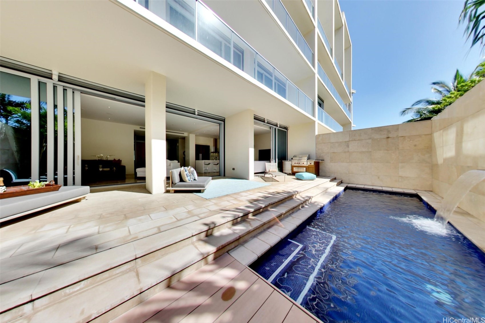 Villa 3 at Waiea is an exceptional ground-floor residence that truly feels brand new—immaculate, lightly lived-in, and meticulously maintained. This rare villa-style home offers a private entry garden and seamless indoor-outdoor living, ideal for both everyday comfort and elegant entertaining. The open floor plan is enhanced by over $250,000 in custom upgrades, including black sea travertine flooring, motorized shades, a Sonos sound system with in-ceiling speakers, and a pre-wired Lutron smart-home system. Offered fully furnished. The gourmet kitchen is appointed with like-new Miele appliances and refined contemporary finishes throughout. A private two-car garage completes the residence—pull directly into your garage and enjoy the experience of single-family living with full ultra-luxury condo services, exceptional privacy, and security. One of only five villa-style family homes in Ward Village, Villa 3 offers a rare opportunity to enjoy the comfort and privacy of a single-family home, paired with the convenience, services, and prestige of one of Honolulu’s most exclusive luxury residences. Waiea features only 171 residences, creating a rare low-density living experience.