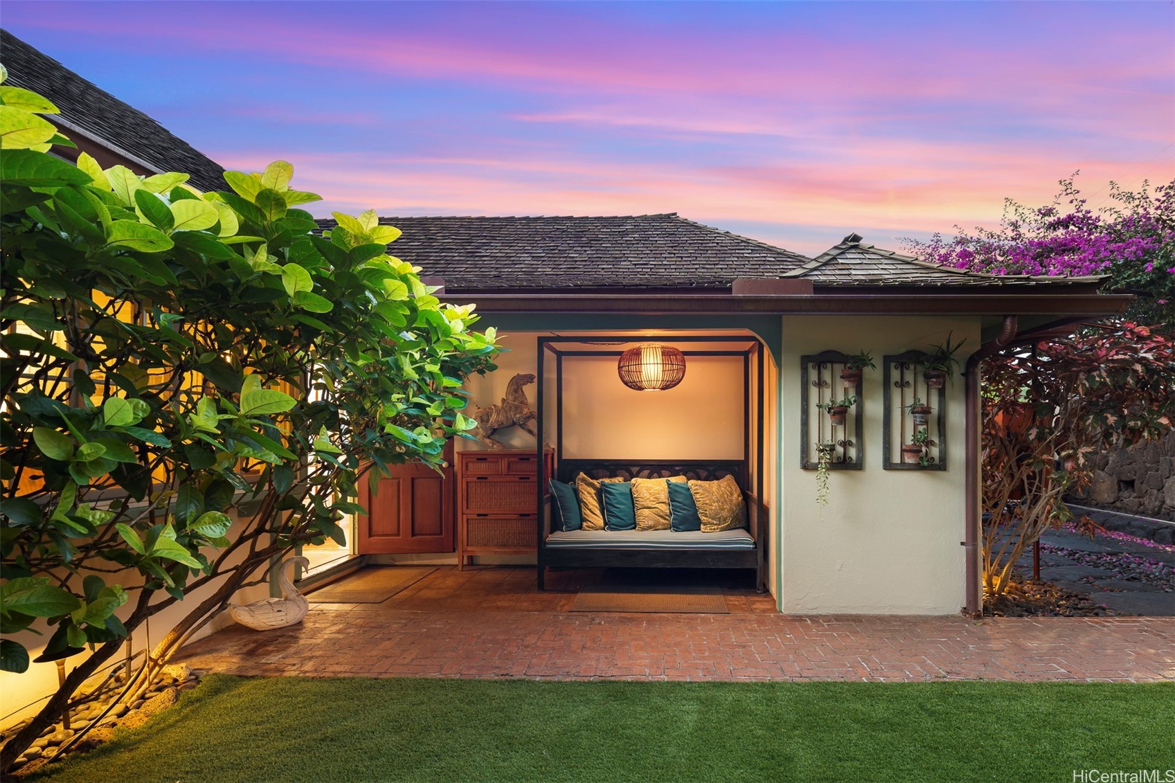 Location, Location. This classic, vintage inspired island residence is ideally situated just minutes from your favorite surf spot and has been lovingly cared for and beautifully maintained. Lush landscaped grounds w/ tropical palms & flowering trees welcome you into a private courtyard, setting the stage for this storybook 3-bedroom, 3-bath home rich in charm and character. An inviting open floor plan features hardwood floors and timeless architectural details including board and batten and beadboard accents, Ohia posts, and charming period glass pane windows and doors that fill the home with natural light. The kitchen offers fresh white cabinetry, stainless steel appliances, a large farmhouse sink, abundant wraparound counters, and glass door upper cabinets ideal for displaying cherished china. A rear palm lined patio provides a peaceful setting for relaxation w/ a freestanding hot tub, lounge area & BBQ space. Modern comforts include split air conditioning throughout, with the added privacy of a fully walled and gated property and open parking for 2 to 3 cars. Ideally located near ocean access, Kapiolani Park, Kaimana Beach, Waikiki, and shops & café’s along Monsarrat Avenue.