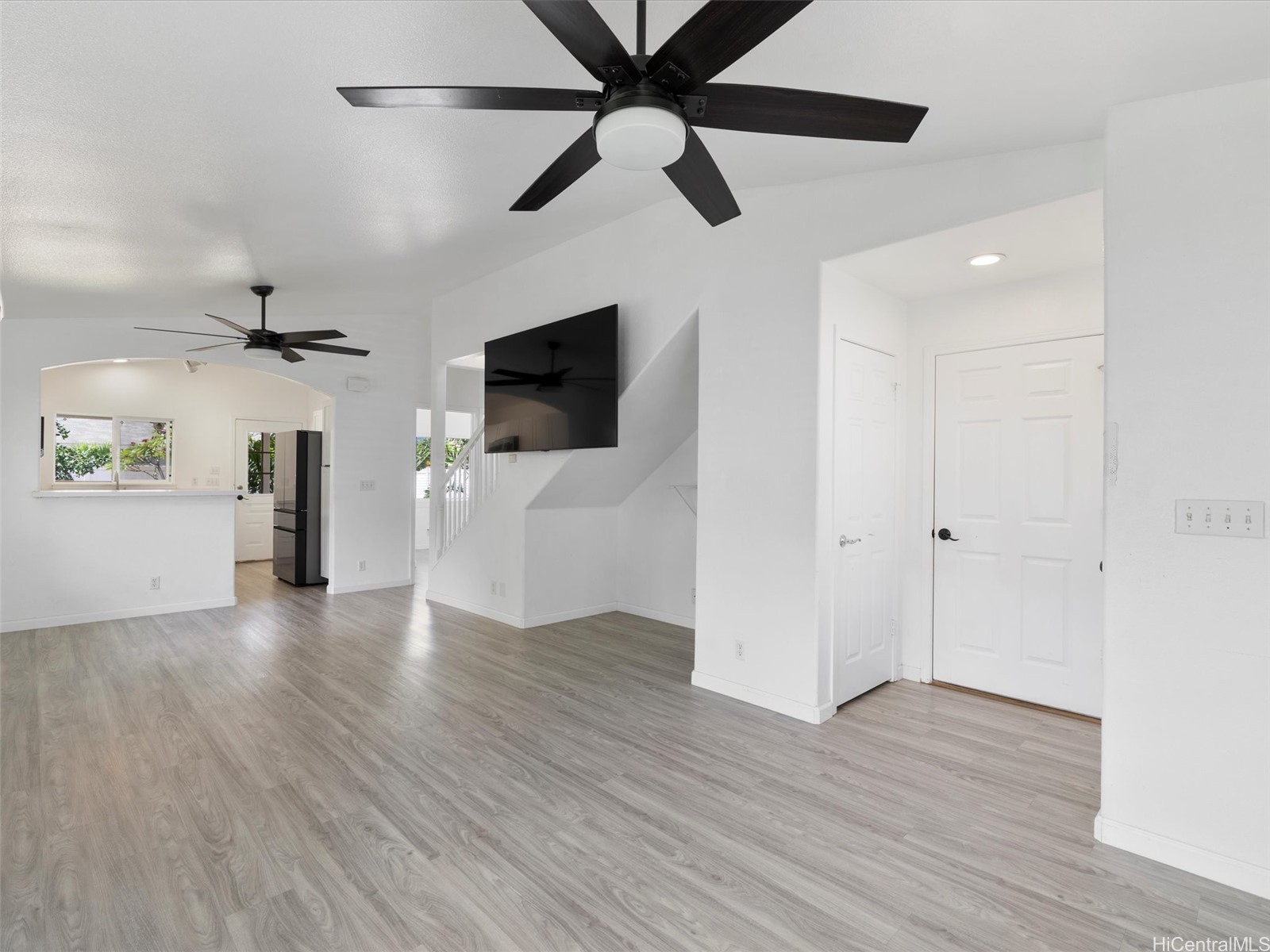 Experience island living at its finest in this beautifully upgraded 3-bedroom, 3-bath home nestled in the highly desirable Palekai neighborhood of Sea Country. Thoughtfully enhanced with luxury vinyl flooring throughout, this home features a fully remodeled kitchen with new countertops, cabinetry, and appliances—all completed within the past year. An upgraded vanity adds a touch of elegance to the primary bedroom suite, while the convenience of one bedroom and a full bath on the first floor offers flexible living options. Leased solar panels help keep energy costs low, and the expansive, fenced-in backyard is perfect for outdoor entertaining. Just minutes from the beach and the famous Maili Pillbox Hike, this home also includes access to a community pool with no maintenance fee—blending comfort, sustainability, and the coastal lifestyle you’ve been looking for.