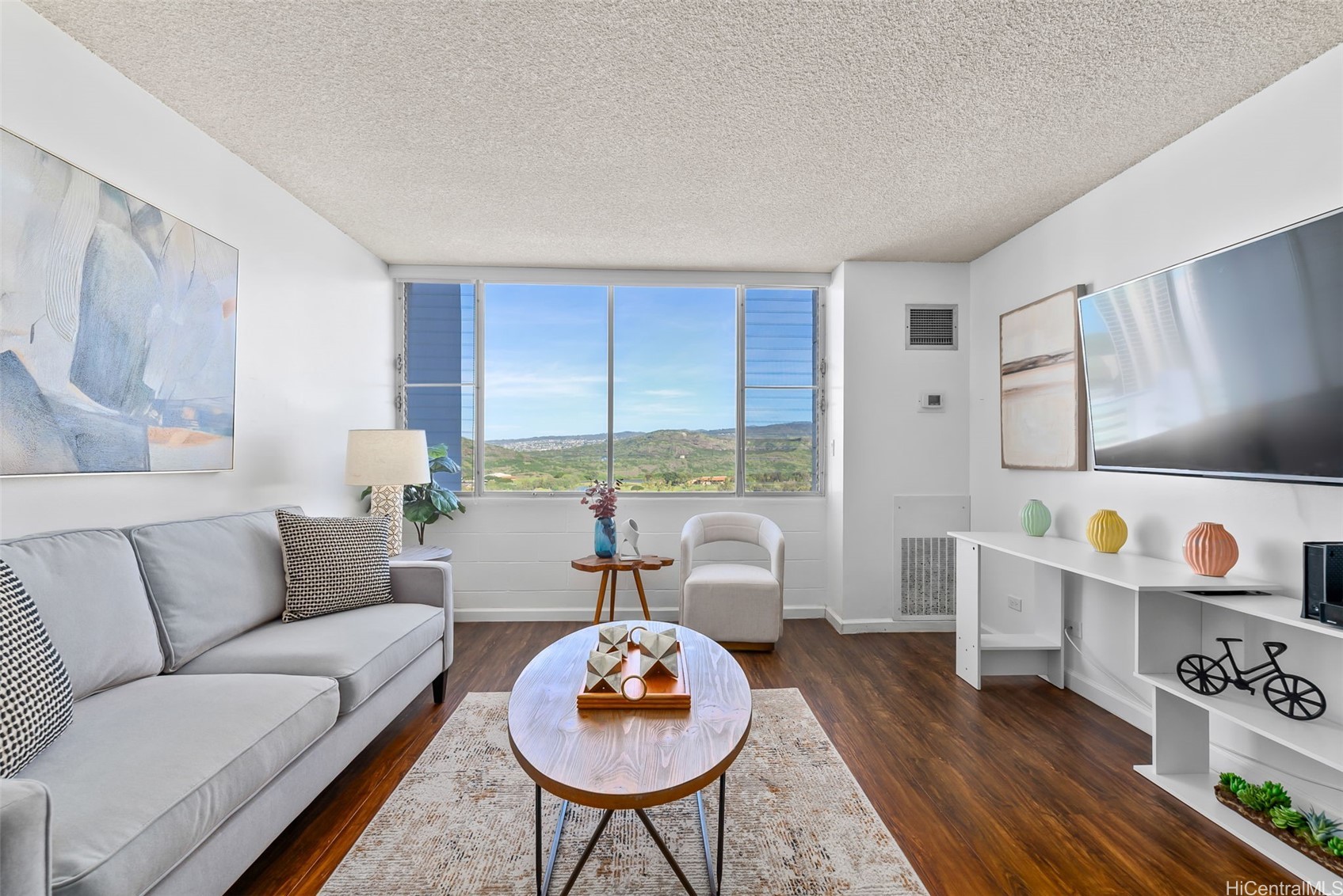 Beautifully upgraded 1 bedroom, 1 bath residence with 1 parking, in-unit washer/dryer, and central A/C. This spacious 594 sq ft unit offers a comfortable and functional layout and is located on the mauka side of the building with views of the Honolulu Country Club Golf Course and the Ko‘olau Range, steady tradewinds, and no direct afternoon sun. The unit is move-in ready and features quartz countertops, vinyl flooring, stainless steel kitchen appliances, and a front-load Bosch washer and dryer. Harbour Ridge is a secured, well-maintained building with 24/7 security, 16 guest parking stalls, and two on-site pools. Maintenance fees include electricity, cable TV, central A/C, hot water, sewer, and water, and the unit comes with a generously sized parking stall conveniently located near the elevators. A great opportunity to enjoy quality upgrades, views, and value in a well-managed building. You don’t want to miss this opportunity!!!