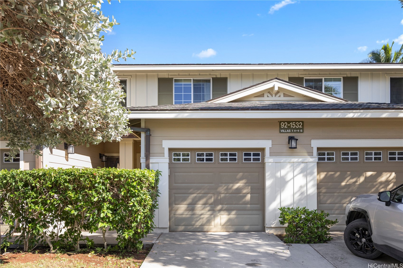 Welcome to Ko Olina Hillside Villas, where island living meets comfort and convenience. This well-appointed two-story 2-bedroom, 2.5-bath townhome features high ceilings, an open-concept layout, and modern finishes throughout. The kitchen offers premium stainless-steel appliances and flows seamlessly into the living and dining areas, ideal for everyday living and entertaining. Central air conditioning provides year-round comfort. A one-car garage plus driveway parking adds convenience. The property can be sold with all the furnishings! Just bring your suitcase and toothbrush! Enjoy resort-style amenities including pool, jacuzzi, and BBQ area, and access to the Ko Olina Beach & Sports Club with a fitness center, tennis courts, and activities. Moments away from Ko Olina’s four sparkling lagoons, Ko Olina Golf Course, world-class resorts, restaurants, and shops — with Disney’s Aulani, The Four Seasons, and Marriott Beach Club as your neighbors. Perfect as a vacation property, primary home, or investment. Discover the resort lifestyle of Ko Olina. The back lanai could be fully fenced in if desired.