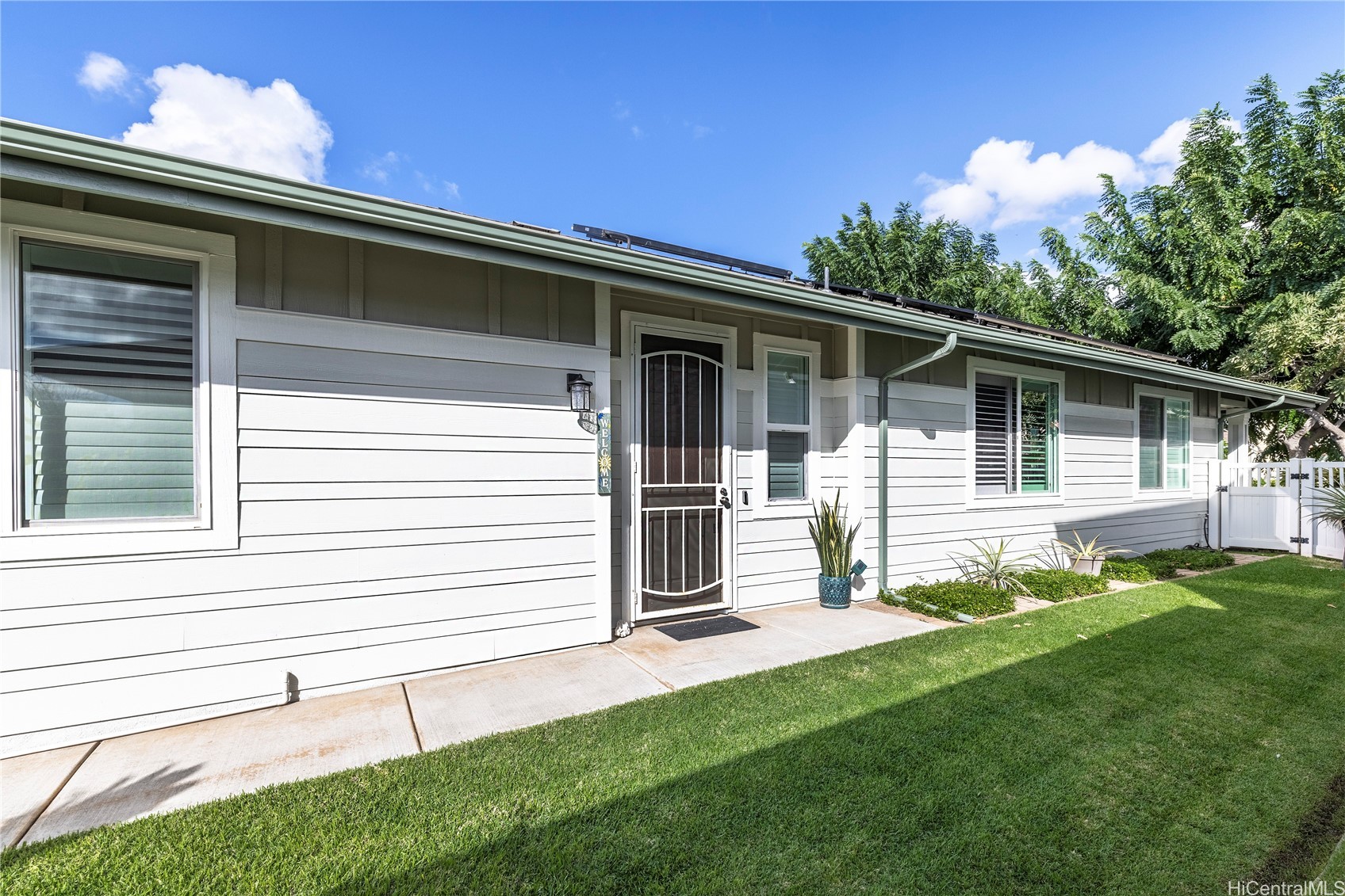 This beautifully upgraded single-level home is located in the desirable Kawena at Mehana community in Kapolei. The property features a fully remodeled kitchen with granite countertops, modern cabinetry with soft-close doors, built-in pullouts, and stainless-steel appliances. The open-concept floor plan provides seamless flow between the living, dining, and kitchen areas, making it ideal for everyday living and entertaining. Thoughtful upgrades throughout include new vinyl plank flooring, polyresin shutters, newly installed gutters, and a Mitsubishi split system AC for enhanced comfort. Additional energy-efficient improvements include leased solar panels and a solar water heater. The home also offers a Vivint alarm system, three spacious bedrooms, two bathrooms, and freshly painted interior and exterior finishes. Residents of Mehana enjoy access to community amenities including a pool, basketball courts, dog park, bike paths, restaurants, shops, and nearby medical facilities. Conveniently situated, this home is just minutes from Ka Makana Ali‘i Shopping Center, the Kroc Center, freeway access, rail transit, and the Ko Olina Resort area.