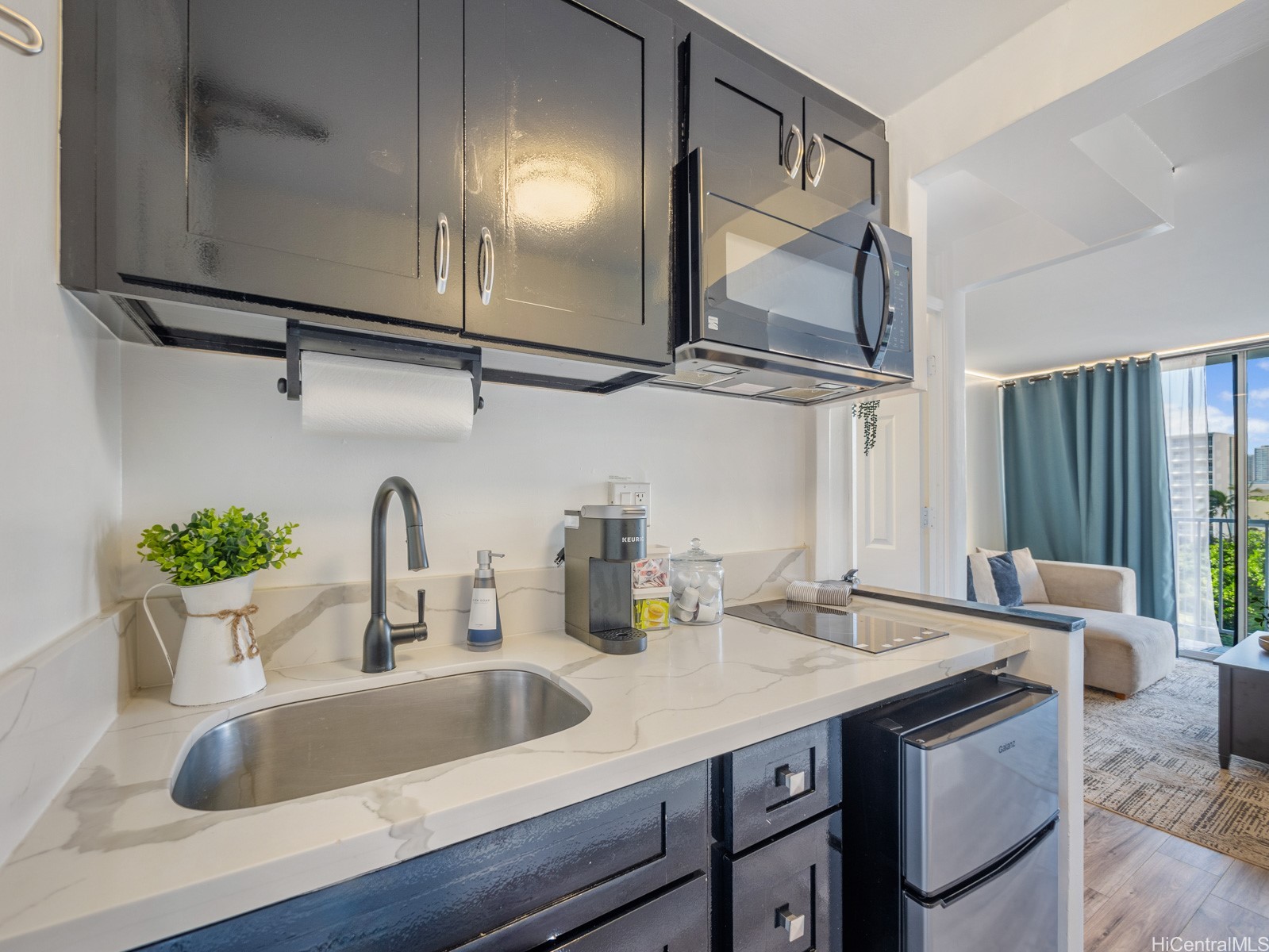 Experience the best of island living at Pacific Monarch, ideally located in the lively center of Waikiki. This tastefully updated studio with a convenient kitchenette blends modern style with everyday practicality—perfect for investors expanding their portfolio or anyone seeking their own Waikiki getaway. Currently a successful short-term rental, the unit showcases thoughtful upgrades and an efficient layout designed for comfort and ease. Residents and guests can enjoy premium amenities such as a 24-hour front desk, rooftop community lounge, sauna, and a stunning rooftop pool deck with panoramic ocean and city views. Just moments from Waikiki Beach, the International Market Place, and endless dining, shopping, and entertainment options, this property offers true convenience. Whether you’re searching for a strong income-producing investment or a personal slice of paradise, this studio has it all. Schedule your private showing today and discover the lifestyle Pacific Monarch has to offer!