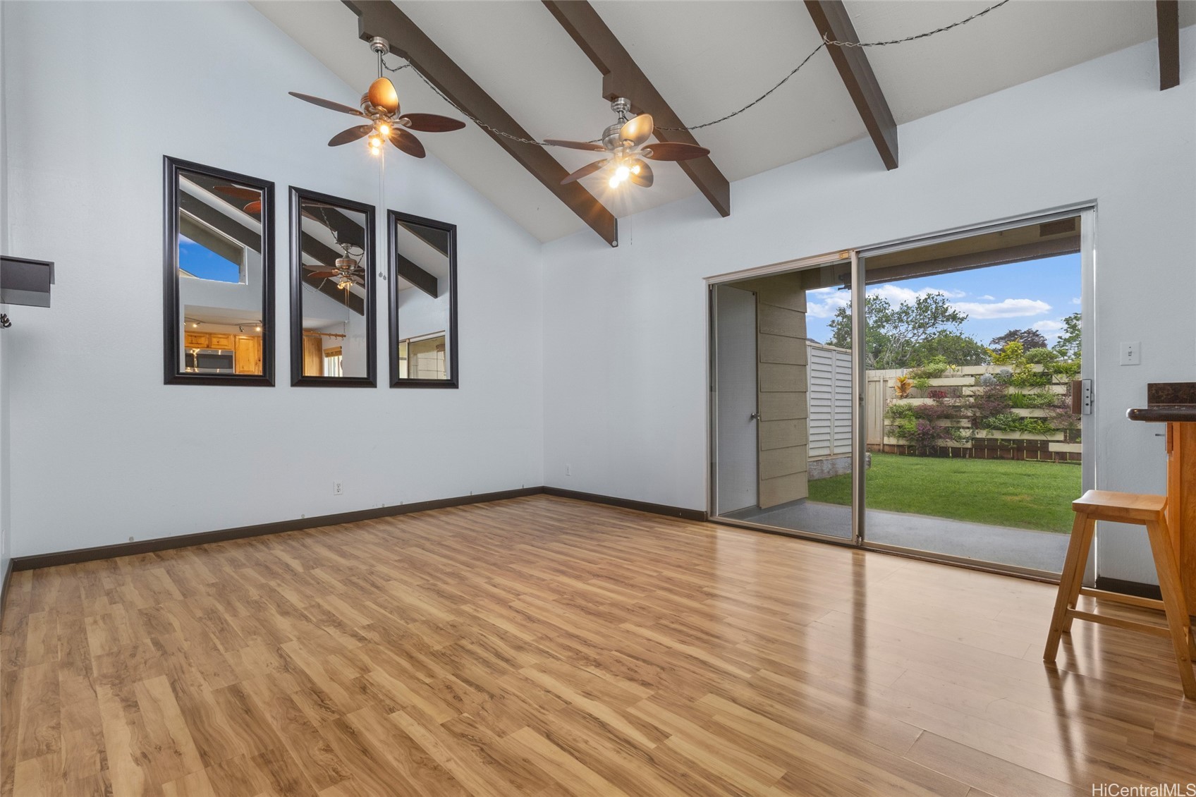 High vaulted ceilings and abundant natural light create a bright, spacious feel throughout this well-positioned single-level 2-bedroom, 1-bath Kealohi Hale Patio Home. Enjoy two private enclosed yard spaces—including one with a living wall—ideal for relaxing, gardening, or entertaining. The large fenced outdoor area extends your living space and offers the indoor-outdoor flexibility. Interior features include a walk-in closet in the primary bedroom, pantry storage, updated kitchen, AC units in both bedrooms, and additional overhead storage near the entryway. A generous exterior storage area adds even more everyday functionality. Two side-by-side parking stalls are conveniently located near the unit. Desirable single-level living with private yard space in the heart of Mililani, close to parks, shopping, schools, and recreation centers