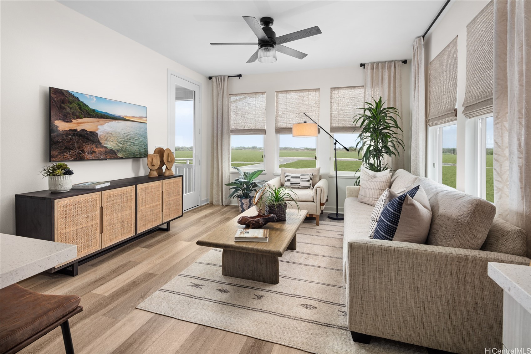 Available Now! Welcome to Ka’ulu by Gentry, the newest residential community in Kalaeloa! This brand new, beautiful 3 bedroom 2 bath home with a garage offers Interior appointments such as: 9” ceilings, designer laminate cabinets with soft close; luxury vinyl planks throughout; solid surface countertops, Stainless steel appliances, spacious primary walk in closet, mirrored doors & more. Numerous energy saving features to keep your bills low: spray foam insulation in the ceiling & exterior walls; central AC-high efficiency rated SEER2 (16+)certified; low-E impact-resistant vinyl windows; solar water, digital thermostat; LED lighting package; insulated roll-up garage door; (EV)electric vehicle ready; energy star appliances. . Boasting a huge covered lanai, and a great location, only a quick jump to the freeway and a few minutes to the beach, shopping and restaurants! Seller offering a 3% credit ($22,530) for closing costs when financing through Gentry Home Loans. Come and see all our model homes and other options. Photos are of model home.