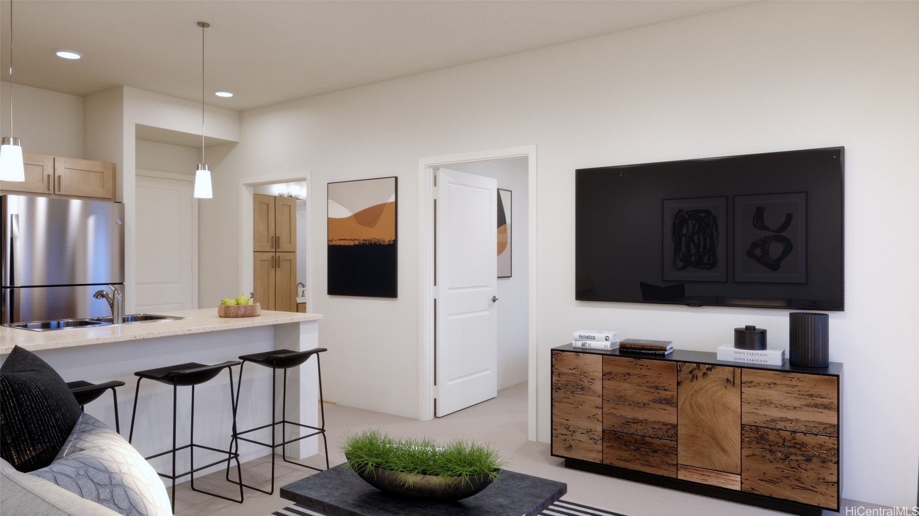 Welcome to Lau Le'a at Koa Ridge. Castle & Cooke Homes newest townhome community thoughtfully designed for Hawaii families. Nestle in a highly desirable master-planned community in Central Oahu. This 1 bedroom, 1 bath unit with 2 assigned parking stalls offer spacious open concept living with modern comforts. Enjoy easy access to the H2 freeway and minutes away from Costco, Foodland, many local eateries, Central Oahu Regional Park, Waikele Shopping Center and more. Key features include interior fire sprinklers, wall a/c units in the living room and bedroom for your comfort, HIMAC kitchen & bath countertops, maple shaker kitchen & bathroom soft close kitchen & bath cabinets with wood boxes , hurricane impact resistant windows for enhanced safety, Alrm.com WI-FI doorbell with live & recording feed, solar hot water system for energy efficiency and more. Come join the many families that live in this wonderful "Surban" Community.